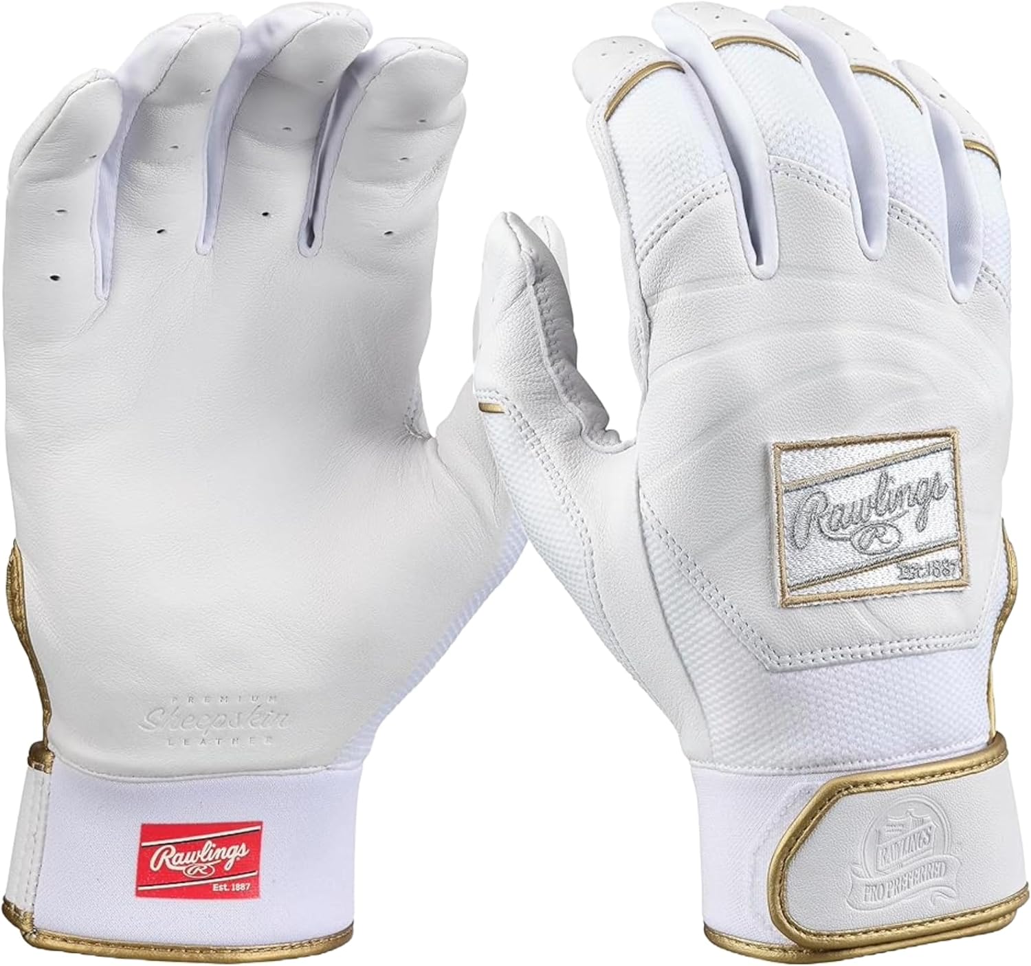Elevate your batting game with Rawlings Pro Preferred Batting Gloves, the top pick for high school players and beyond. These gloves boast professional-grade smooth Cabretta sheepskin leather, ensuring excellent performance and longevity across the palm, back, and strap. Enjoy unrivaled comfort and a tailored fit with the flexible neoprene wrist cuff, accented with gold piping for a stylish touch. The double-stitched rolled edges fortify the gloves' durability and provide a polished, long-lasting finish. Showcase your passion for the game with the iconic embossed Rawlings Patch logo and Pro Preferred logo.