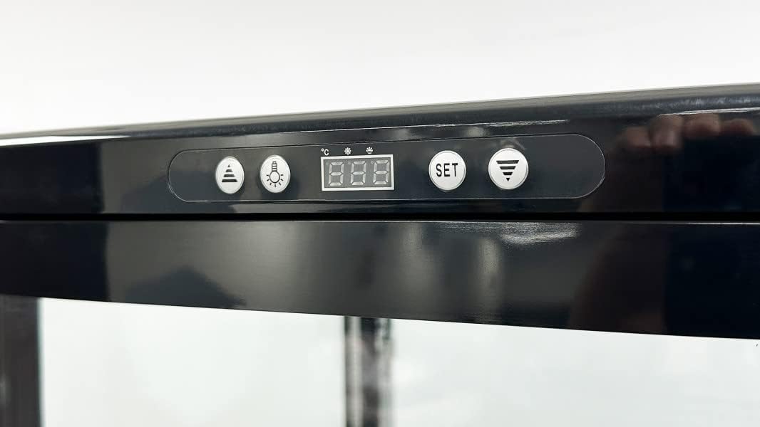 Commercial Refrigerator Glass Door 4 Sided Glass all direction Black Merchandiser Display Cooler Case Fridge NSF Certified 67" Tall16 inches width, capacity 8.3 cuft 110V, RT-235L Order on Amazon will ensure the safety of your purchase. This Black Commercial Display refrigerator has 4 glass display walls, with a dimensions of 16 in Length X 15 in Depth X 67 Height, Its capacity is 8.3 Cu.ft. Crafted with high quality temperature insulation material, this item will keep all your kitchen ingredients cooler and fresher. The led lights included will help you keep track of inventory. Material: Designed with self closing one glass door, this unit is easy to clean and will withstand heavy-duty restaurant tasks. It also has 4 lockable castor wheels to help move around, and 4 Epoxy coated shelves increase practical usage, easy to slide in and out, clean and maintain. Feature: High Quality Compressor circulates with environmental friendlyr600a Refrigerant. Operating under 110 Volt electricity, controlled by digital theometer display and knob, it is easy to adjust the temperature from 0 to 12°C, this 360 Watt Cooler saves your electricity bill. Usage: You can use this Display Refrigerator for storing your freshly made food such as milk, egg, vegetables and beverages or beers. in any indoor environments-restaurant, cafe, bakery, bar, grocery store, or even your in your garage.