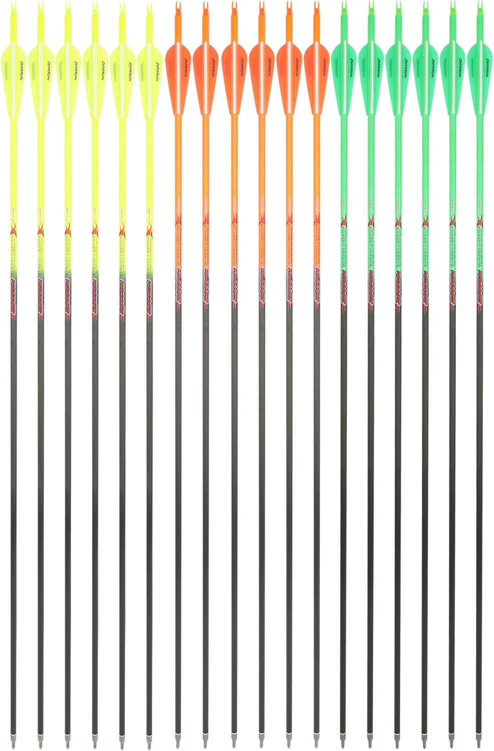 Name:Colorful Hunting Arrows Feathers: 3-inch teardrop rubber feathers. Colors: 2 orange 1 white, 2 fluorescent green 1 white, 2 fluorescent yellow 1 white Tail: Clear Insert Tail Arrowheads: 100-grain threaded arrowheads (with target head gasket) Material: Pure carbon (shaft material) Spine:300,350,400,500,600 Inner Diameter:6.2mm Outer Diameter:7.38 (spine350) Shaft length:81.3cm(32inch) Weight:27g(spine350) Total length:85.2cm(33.54inch) Straightness standard: 0.006inch 【Package include】6 or12 pcs carbon arrow.