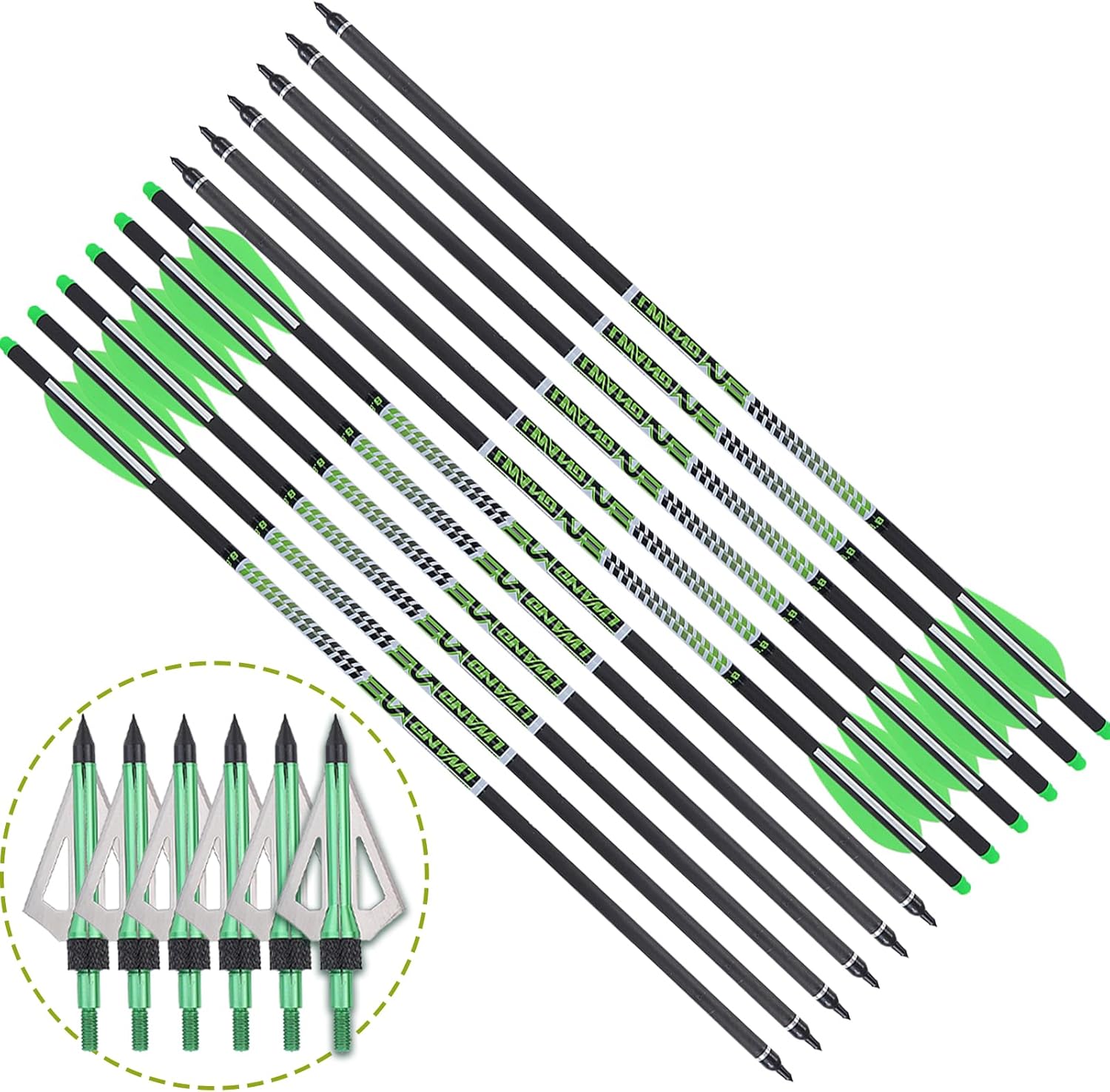 LWANO 100% Pure Carbon Archery Crossbow Bolts Arrows 22 Inch Carbon Arrows 12 Pack and 6 Pack Hunting Crossbow Broadheads kit for Hunting & Target Practice