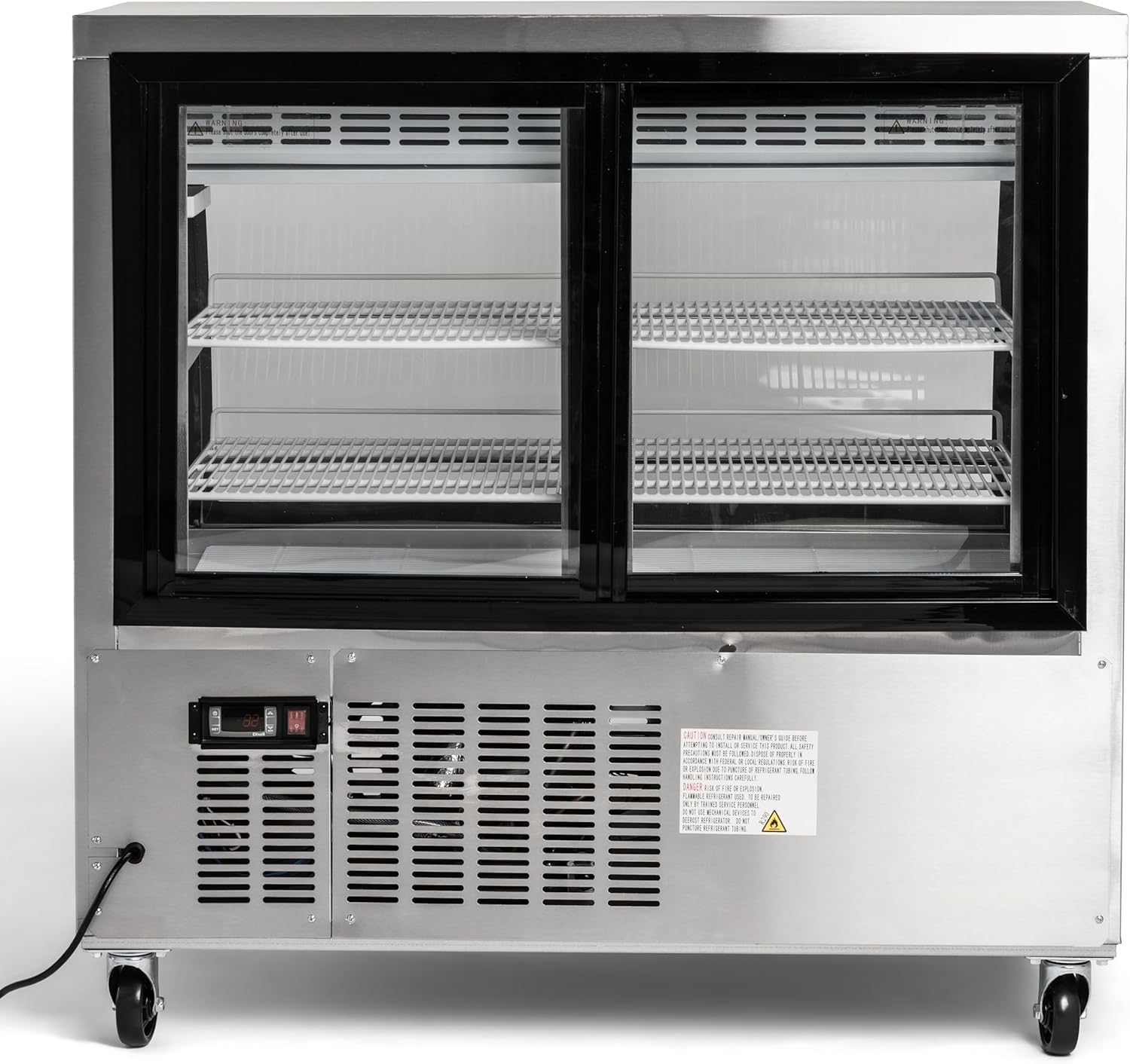 | Additional Features | Adjustable Shelves, Automatic Defrost, Digital Temperature Control, LED Lights, Wheels |