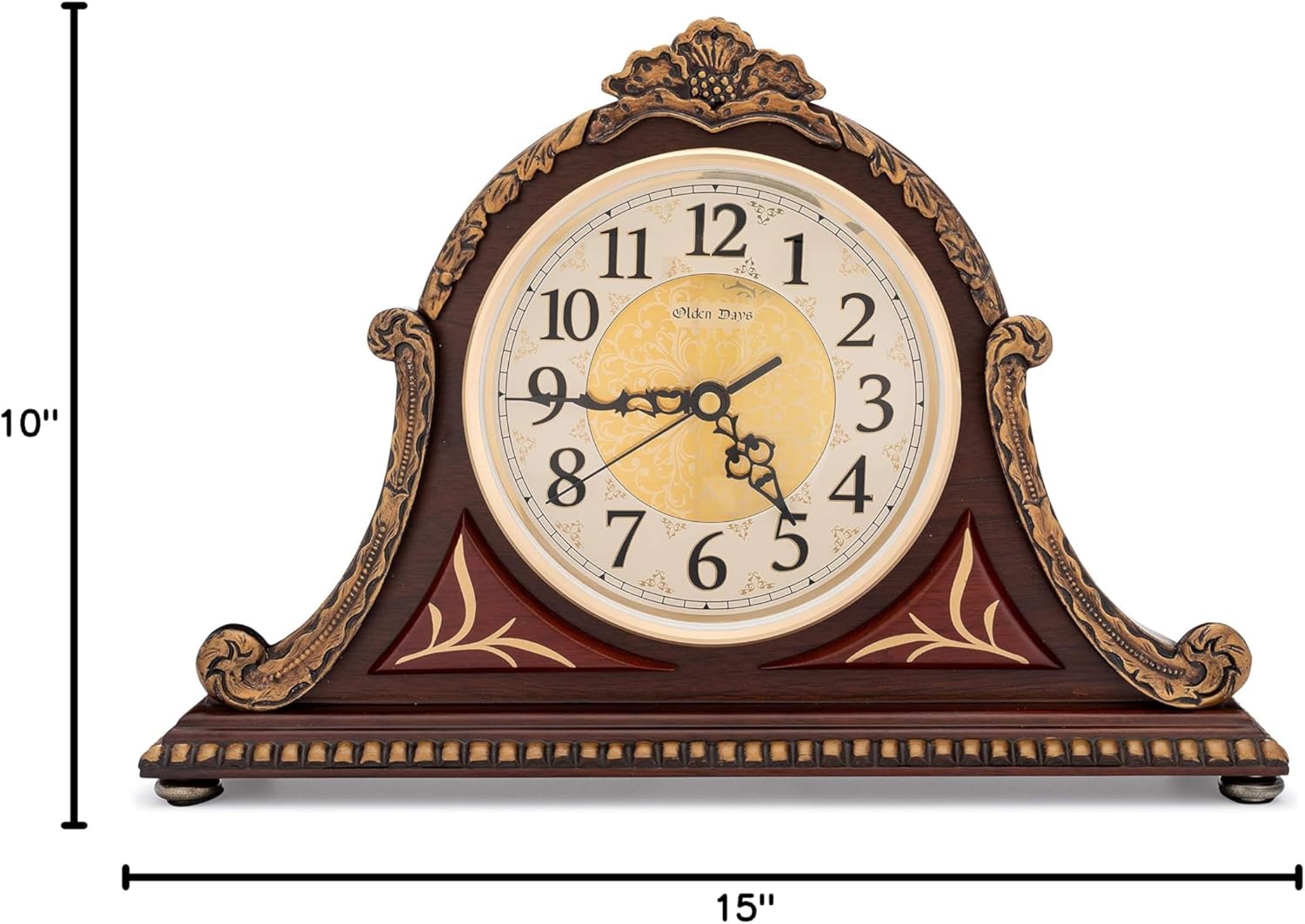 Made from real wood, this vintage style mantel clock from Olden Days will add a timeless, antique look to your home. It features 4 different chime options, including a Westminster style chime. This clock comes with a full 7-year warranty from Olden Days. This clock measures 15" inches X 10" inches X 4.5" inches.