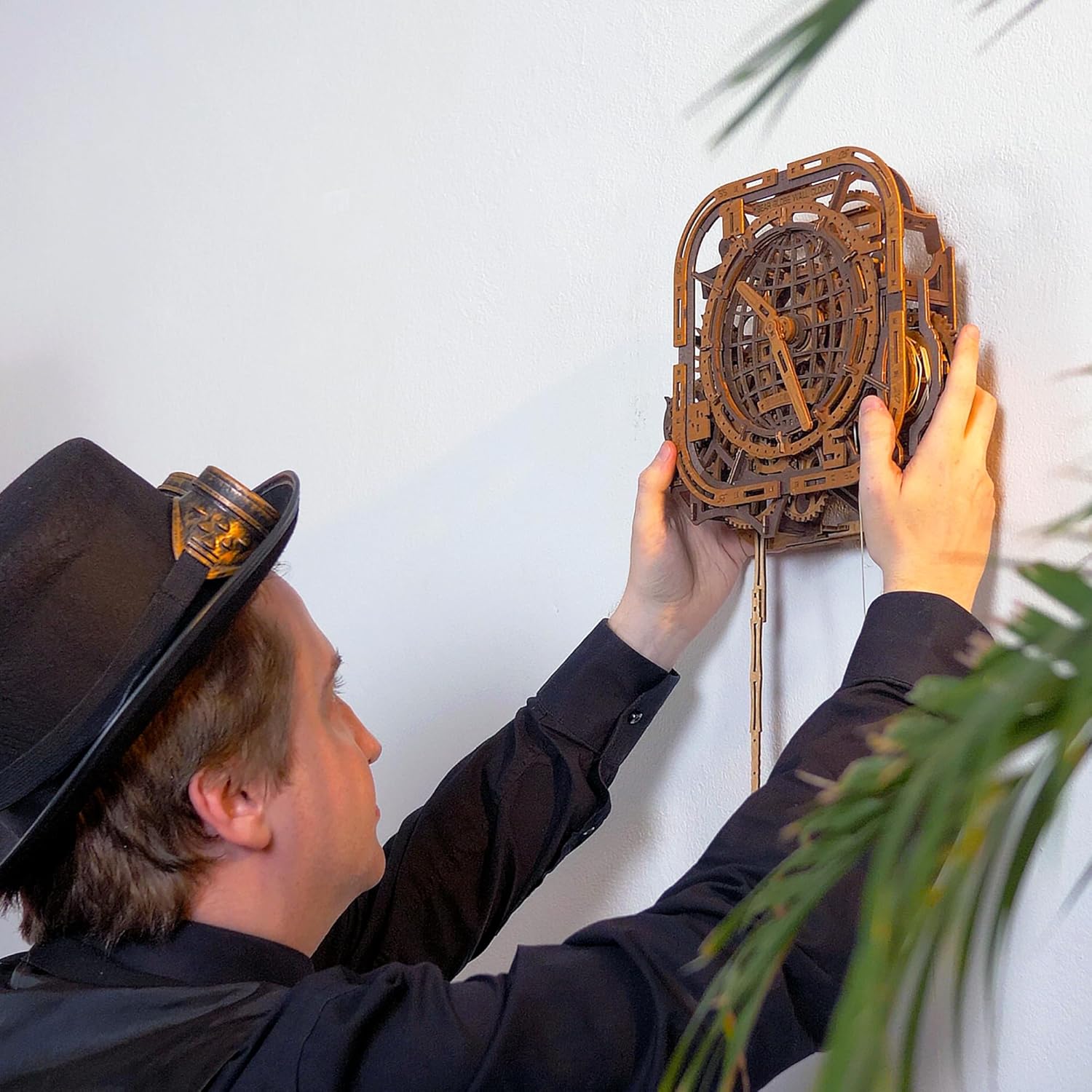 Discover the 3D Wooden Puzzle – Gear Globe Wall Clock, a unique fusion of art, engineering, and timeless design. Inspired by the beauty of our planet, this elegant globe-style wall clock brings a sense of adventure and sophistication to any interior. With 369 precisely laser-cut wooden pieces, it offers a rewarding 3D puzzle experience for adults that combines craftsmanship, logic, and creativity. Build your own wooden clock puzzle – no glue or special tools required. Each part fits perfectly thanks to precision European engineering, ensuring smooth motion and satisfying mechanical assembly. As you put together the rotating globe gears, you’ll feel the joy of model building and the pride of creating a fully functional 3D wooden puzzle clock for adults. The completed Gear Globe Wall Clock measures 10.4 × 19.4 × 3.6 in, making it an impressive wall centerpiece that reflects your taste for detail and mechanical artistry. It’s both a decorative clock and a conversation starter – ideal for home offices, libraries, or living rooms. Perfect for hobbyists, engineers, and creative minds, this model offers hours of mindful relaxation. Whether you love 3D puzzles for adults, intricate model kits for adults, or collectible wooden decor, this project delivers satisfaction at every step. Designed and made in the EU, the Gear Globe Wall Clock represents sustainable craftsmanship and a passion for precision. A meaningful gift for puzzle lovers, clock enthusiasts, or anyone who appreciates hands-on creativity and mechanical beauty. Bring movement, style, and imagination together — assemble your world in motion.