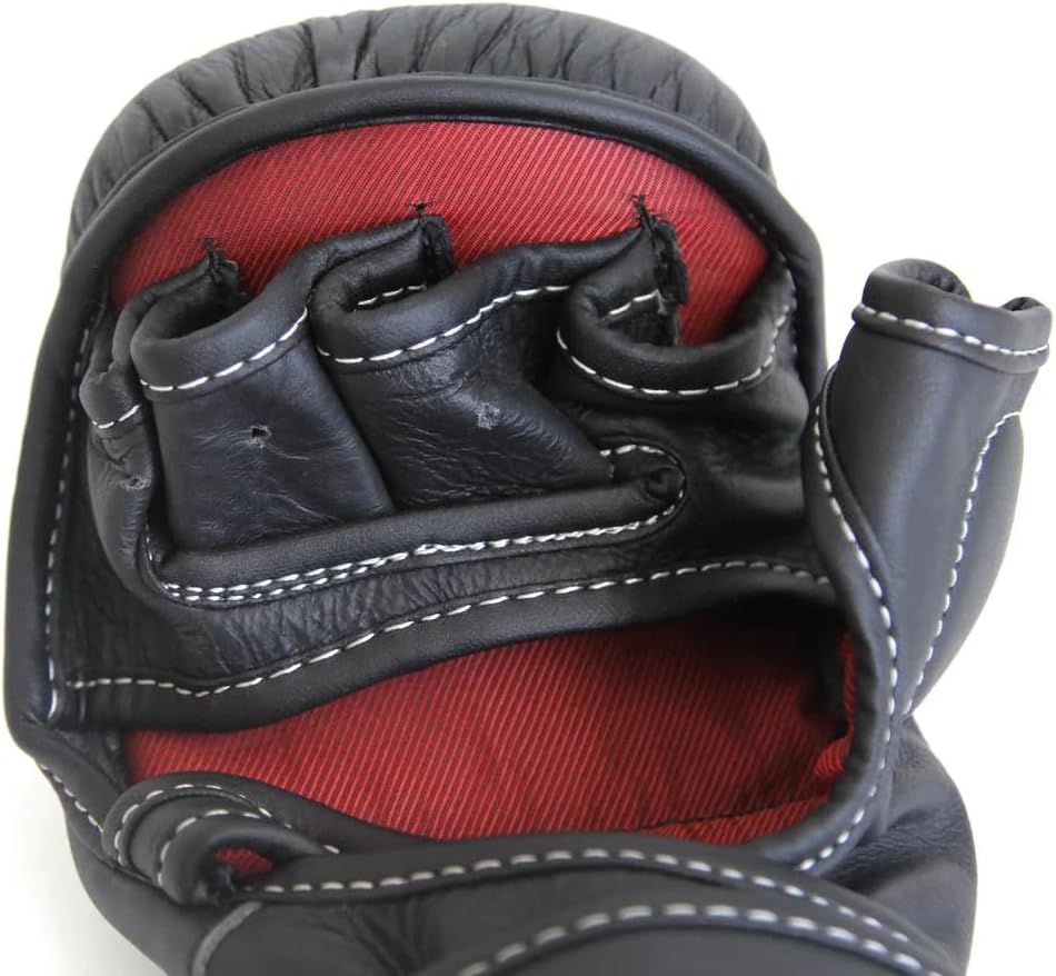 Enhance every aspect of your MMA training and sparring sessions with our Leather MMA Hybrid Sparring Gloves, crafted from premium genuine cowhide leather. These gloves strike the perfect balance between durability and performance, ensuring they endure the challenges of rigorous training while delivering optimal functionality. The versatile hybrid design of these gloves makes them suitable for various combat sports, offering adaptability and versatility for a diverse range of training sessions. The incorporation of impact-resistant padding provides exceptional protection for your hands, knuckles, and wrists, instilling confidence as you engage in intense sparring sessions.Tailored for a secure and comfortable fit, these gloves feature an adjustable closure system, providing stability during the most demanding workouts. The gloves go beyond stability, enhancing your grip and control for precise strikes and punches. With added ventilation and breathable materials, your hands stay cool even during extended training sessions, making these gloves an ideal choice for continuous practice. Boasting a professional-grade design, these sparring gloves not only deliver on performance but also present a sleek appearance suitable for both gym training and competitive environments. Whether you're a seasoned martial artist or a beginner, these gloves cater to all skill levels, offering reliable support throughout your training journey.Train with confidence, knowing you have gloves that are both durable and high-performance, capable of withstanding the demands of your training routine. The wide array of appealing colours allows you to choose a pair that matches your personal style, adding a touch of customization to your combat sports gear. Elevate your MMA experience with SMAI Leather MMA Hybrid Sparring Gloves – your go-to choice for superior training gear, designed to meet the needs of serious practitioners in both functionality and style. Step into the training arena with assurance, equipped with gloves that prioritize both durability and optimal performance.