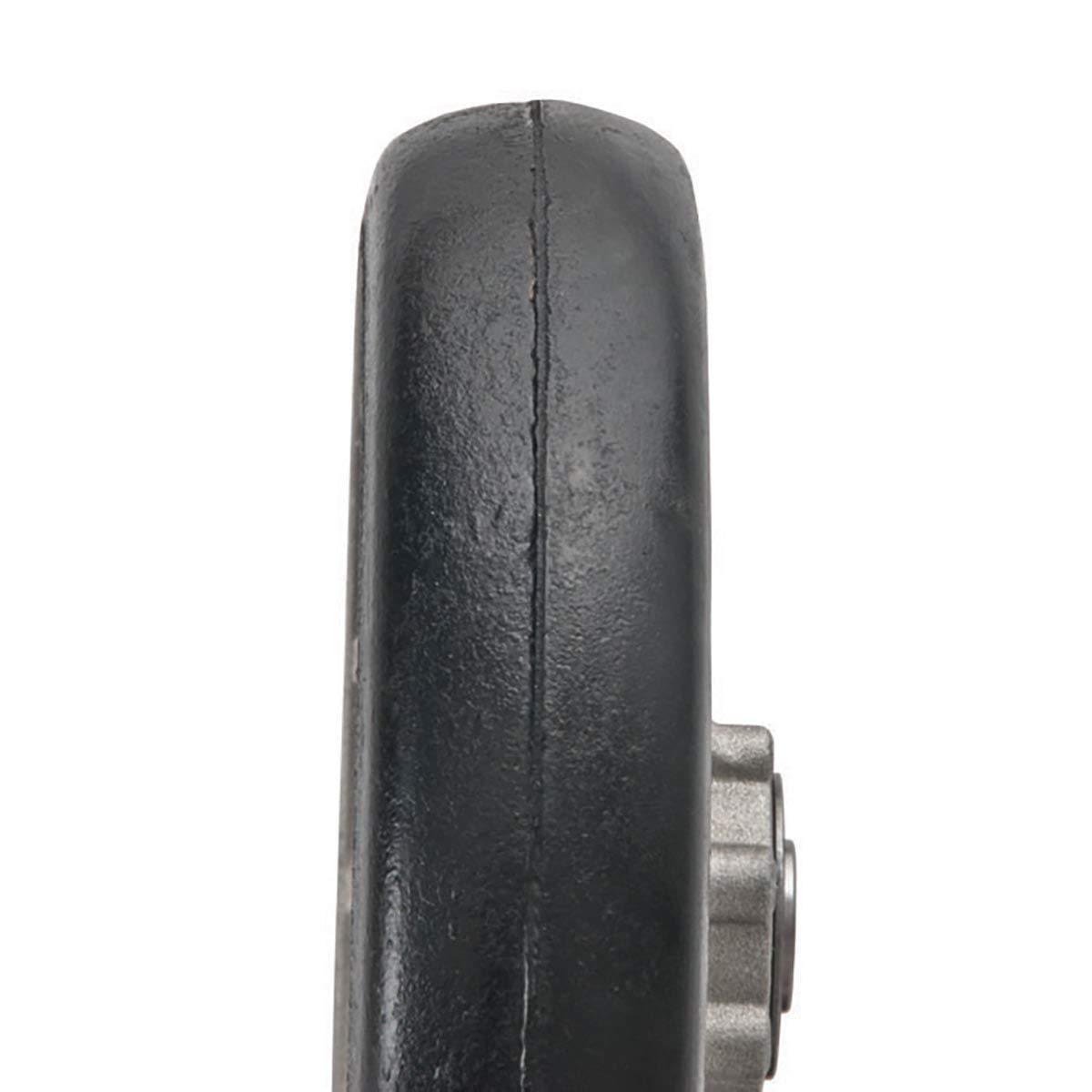 Mold on rubber on die-cast aluminum hub with sealed semi-precision ball bearings. Hard, puncture resistant rubber works well on smooth to semi smooth surfaces. The bonded tire is durable and rolls well over most paved surfaces. 8" Diameter.