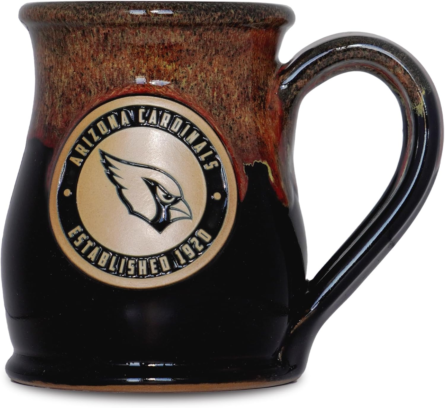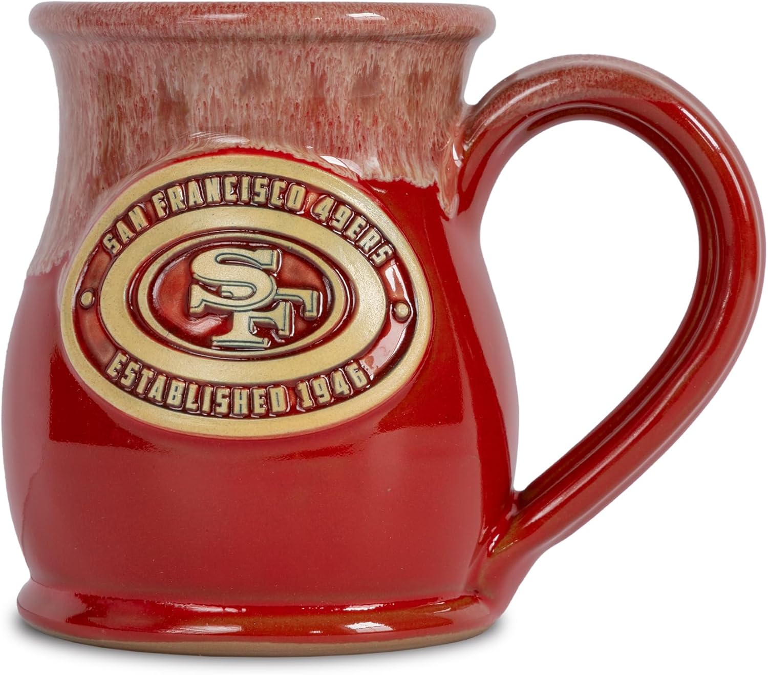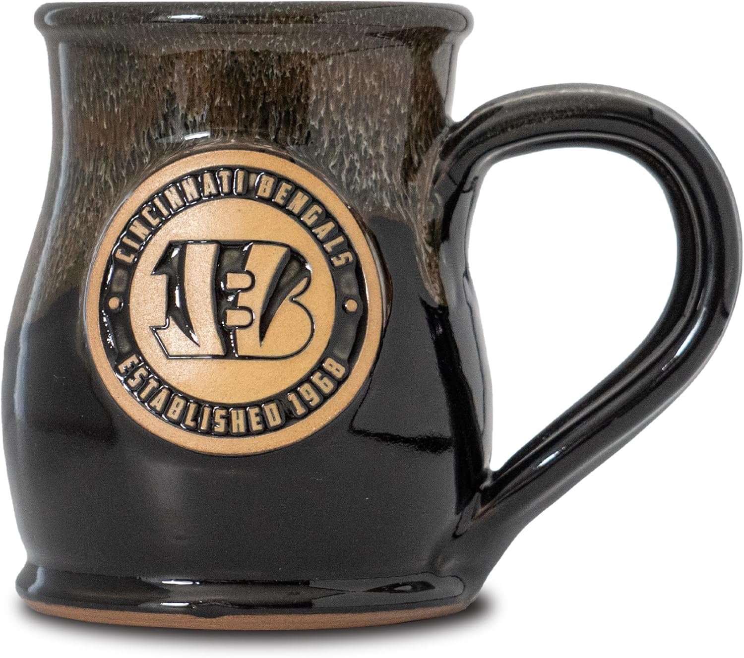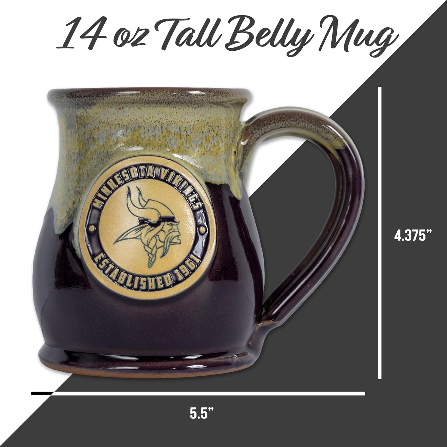 Start your morning right with our exclusive Ceramic Coffee Mug, perfect for showing off your NFL team spirit while enjoying your favorite hot or cold beverage. This 14 oz tall belly mug features a unique flat bottom design, making it the ideal choice for football enthusiasts who appreciate both style and practicality. Each mug is hand-thrown and hand glazed, made in the USA by Deneen Pottery. Made from premium stoneware, our large coffee mug is not only cool but also durable and microwave safe, ensuring that it will become your go-to cup for years to come. Choose from a wide variety of team designs, including Philadelphia Eagles, Green Bay Packers, Dallas Cowboys, and more, making it the ultimate gift for men and women who love NFL football. Our oversized coffee mugs are also perfect for holding 14 ounces of your favorite drink, whether it's coffee, tea, or even soup! So, why settle for ordinary red or blue coffee mugs when you can have an extraordinary, unique two-toned coffee mug that showcases your passion for your favorite NFL team? Don't miss out on this must-have addition to your kitchen supplies and order your Tall Belly Mug today!