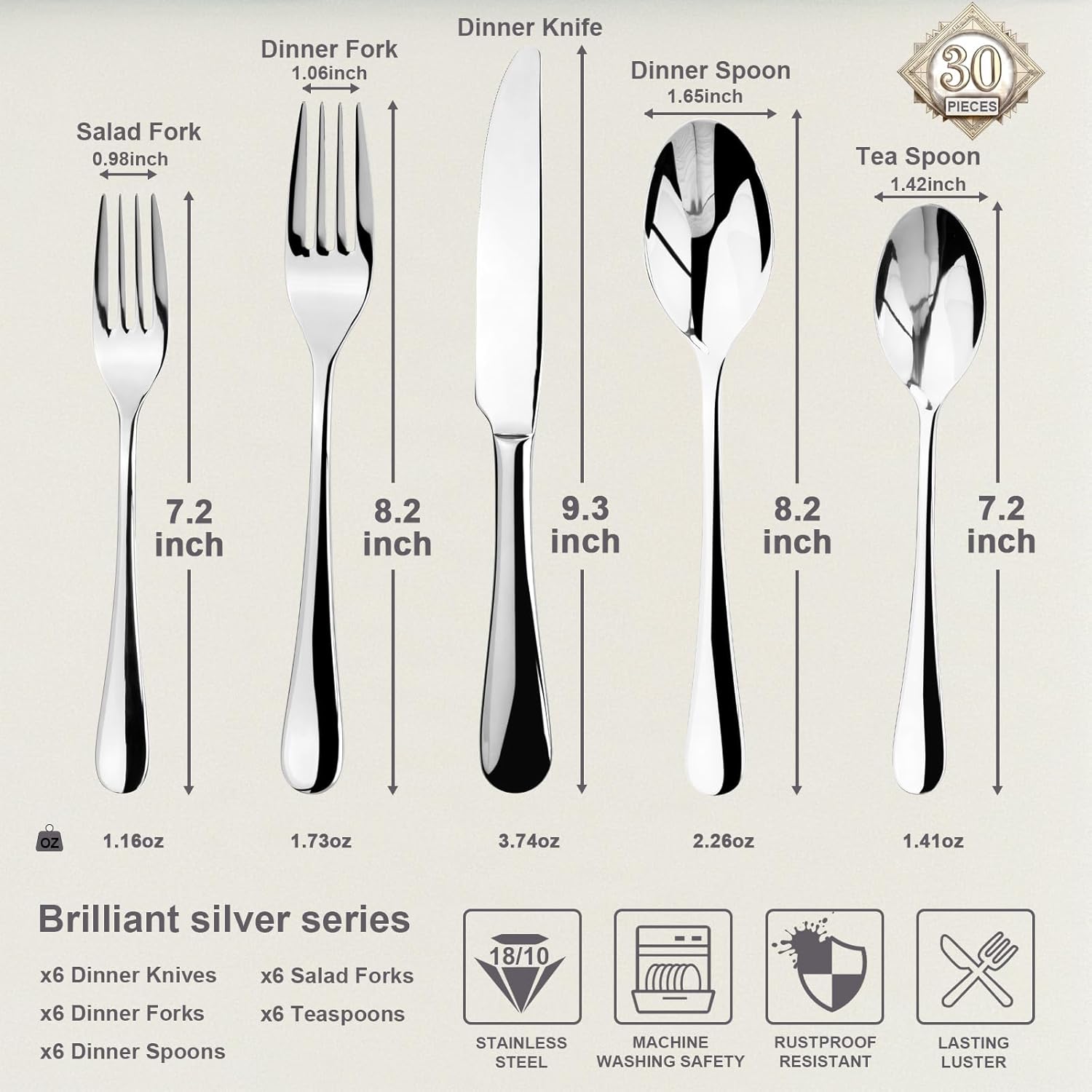 | Included Components | 6 dinner knives, 6 dinner forks, 6 dinner spoons, 6 salad forks, 6 teaspoons. |