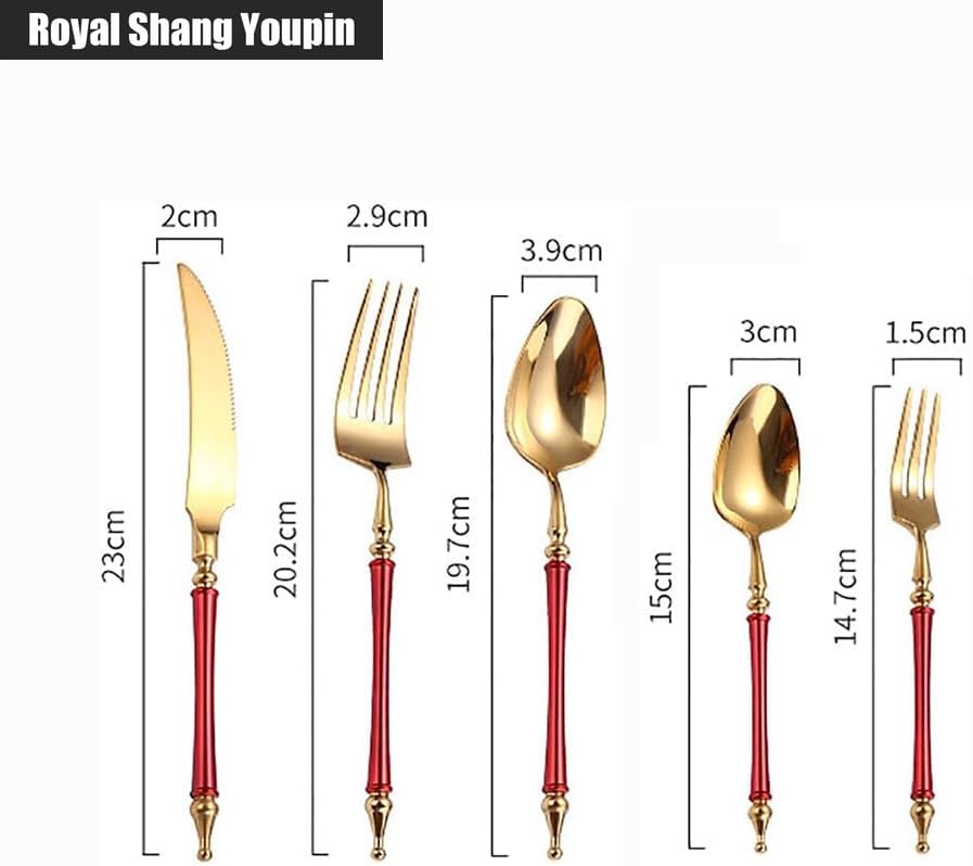 📦 Packaging quantity:5 pieces=(1 knife, 1 pointed spoon, 1 fork, 1 teaspoon, 1 dessert fork).20 pieces=(4 knives, 4 pointed spoons, 4 forks, 4 teaspoons, 4 dessert forks).6 pieces=(1 knife, 1 pointed spoon, 1 round soup spoon, 1 fork, 1 teaspoon, 1 dessert fork).24 pieces=(4 knives, 4 pointed spoons, 4 round spoons, 4 forks, 4 teaspoons, 4 dessert forks). 🛒Shopping tips 1.Due to manual measurement, the size may have 1-2mm error. 2.Due to the different light of the monitor and camera, there may be a slight color difference. 3.After receiving the package, please check whether it is opened, whether the product is correct or not, if you find out the problem of out-of-stock, wrong goods, defects, etc., please contact us by [email], we will solve the problem for you within 24 hours.