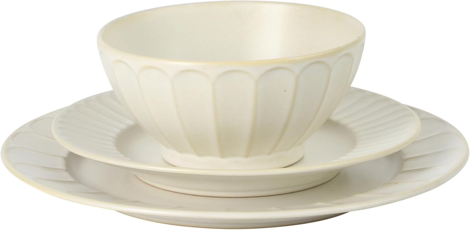 The Winchester Way 12-Piece Dinnerware Set from Gibson Elite features French-inspired detailing with embossed petal rims that echo the beauty of the countryside. Crafted from durable stoneware, each piece is designed to handle quick weeknight dinners, leisurely weekend brunches, and everyday cleaning. Finished with an artisanal reactive glaze, the surface reveals delicate flecks that add character and charm to every setting. Lovely petal embossing along the edges of each plate and bowl adds charming detail, elevating your place setting when layered or styled with other tabletop pieces.As a collection of stunning home staples, this dinnerware set makes a tasteful gift for any occasion. Loved for both its practical use and decorative appeal, it expresses your impeccable taste and well wishes to family, friends, new homeowners, and newlyweds. Dishwasher and microwave safe.Quintessentially sophisticated and thoughtfully versatile, Gibson Elite offers a tasteful blend of form and function brought to a myriad of dinnerware, serving ware, and tabletop accessories. Quality in material selection and stylish aesthetics in designs and glazing techniques provide endless possibilities for creative tablescapes and dining occasions.