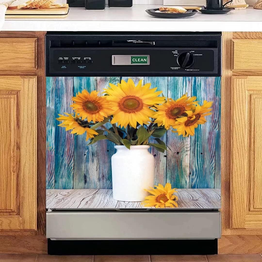 Spice up your kitchen with these one of a kind sunflower dishwasher/fridge magnets. Choose from tons of great styles for every holiday. Removal is as easy as removing any magnet, just roll it up and store. Protect your appliances with our laminated, long-lasting designs.What Makes Our Sunflower Dishwasher Covers Special?✅Which fit about 90% of all dishwashers. If your dishwasher happens to be a little smaller, this material is very easy to trim using either a pair of scissors or a box cutter!✅no harsh, offensive-smelling adhesives to deal with and no massive prep work when sticking or removing.✅Extreme durability & “Value for Money”.✅Water and Weather Proof.Kitchen Dishwasher Covers Size: S - 23 W x 17 H inches; 58.5 W x 43 H cm;L - 23 W x 26 H inches; 58.5 W x 66 H cm;Peel it! Stick it! Love it! Simply stick our smudge-proof and fingerprint-resistant stainless steel dishwasher panel on the front face of your dishwasher. You can use it on your dishwasher as well as on the refrigerator, washing machine, dryer, and many other appliances!Note: Just ensure that your dishwasher is magnetic before ordering the dishwasher cover magnet, Stainless steel appliances are not magnetic.