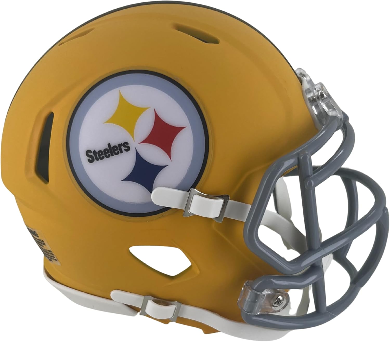 Mini Speed Football Helmet. The ultimate mini speed football helmet collectible, perfect mini speed football helmets for autographs and collectors. Mini Speed Football Helmet with great graphics. Mini Speed Football Helmet with team decal. ABS plastic Mini Speed Football Helmet shells with plastic facemask. Realistic interior foam padding, vinyl-leather chin strap. This is an affordable miniature football helmet for the true fan. Size: 1/2 scale versions of football helmets. Size: 6"(L), 4½"(W), 5"(H) - (NOT FOR WEARING)