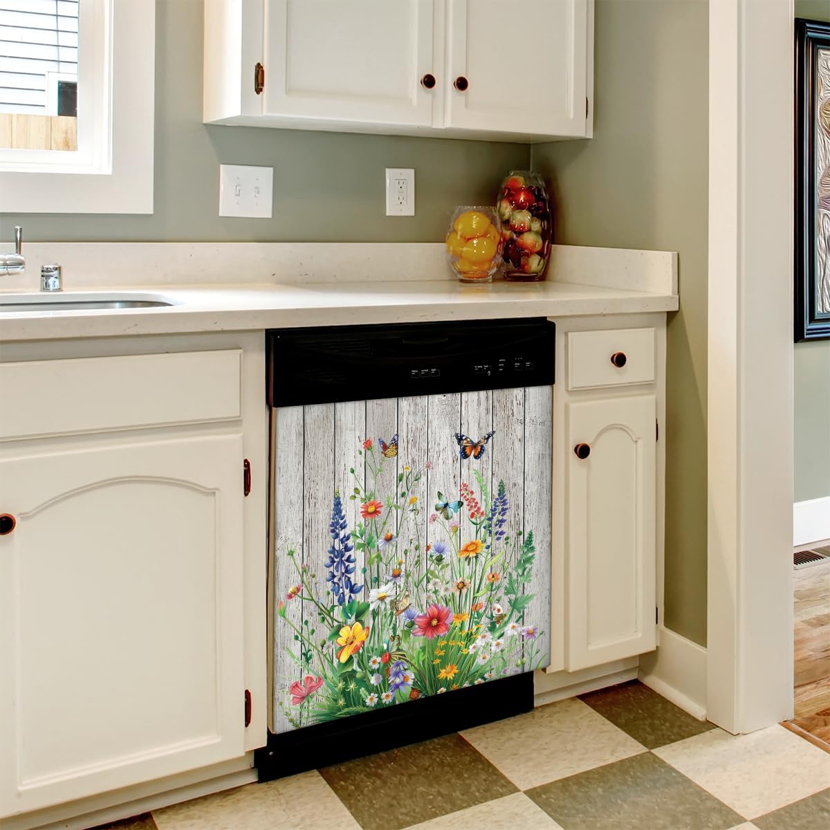 Spring Summer Wildflower Dishwasher Magnet Cover , Scratch Resistant Trimmable Dishwasher Magnet Cover , for Kitchen Appliance Dishwashers Fridge Reusable Magnets Decoration 23 x 26 inchSpecifications: 23W x 26H inches . Can be trimmed to fit most standard dishwasher doors or any magnetic panel. Printing: Single-sided printed design Material: PVC and magnetic composite material. Package: 1x magnetic dishwasher sticker. Features: Can hide surface scratches and dents, make your dishwasher look brand new, and make your kitchen full of vitality. The magnetic sticker is waterproof, dustproof, high temperature resistant, will not fade, strong magnetism, can be firmly adhered to the magnetic smooth surface, easy to trim and adjust, suitable for most dishwashers, coffee machines, refrigerators, microwaves and other kitchen appliances. Can be used as decorations for fall Thanksgiving , Christmas, Halloween, parties, etc., which can enhance the festive atmosphere. Cleaning Tips: Cannot be machine washed, only hand washed with cold water, wipe with a damp cloth. Waterproof material, easy to clean, put in a ventilated place after washing to dry quickly. Note: Please make sure your dishwasher, refrigerator, etc. are magnetic before purchasing. If you have any questions, please feel free to contact us.