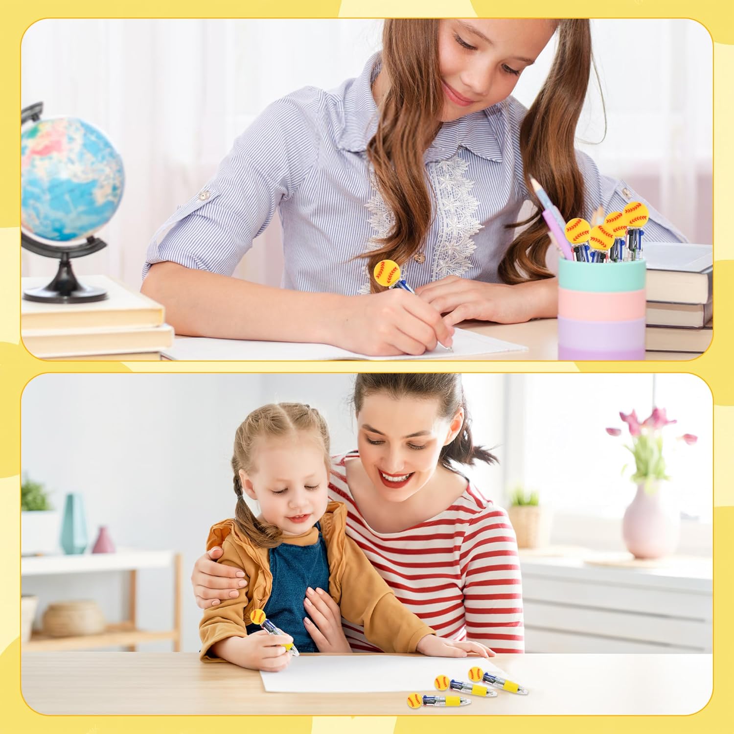 Package Content: Our products contain 25 different styles of 4-in-1 ballpoint pens. Sufficient quantity, diverse styles, enough to meet your various needs in different occasions; It can be used as softball party gifts and holiday gifts for family, friends and classmates to exchange items in class. Kawaii Cartoon Design: These ink pens are all kinds of softball elements, such as softball design, stereoscopic simulation, fine details, bright colors, delicate and attractive, loved by most people, the rubber grip is unusually soft, ensuring that each gel pen is convenient and comfortable to hold. Due to its soft cushioning effect, this helps to extend writing time by reducing finger fatigue and discomfort. Kid-friendly: This cute creative game ballpoint pen is slightly shorter in length and designed for younger users. Their cute and compact design makes them especially child-friendly, ensuring a comfortable little hand grip. Easy to Use: 0.5mm red, black, blue, green four color pen writing clear, clear lines, smooth writing, will not scratch paper; They are not easy to break or deform, the silicone shell has a texture, easy to use, easy to write, is an ideal writing tool. Cute Softball Gift: There fun cute pens have novel design that not only provides an enjoyable writing experience, but also makes an excellent gift for students, teachers, and other occasions such as birthdays, tea parties, book clubs and the back-to-school season. Most people would love to receive such creative stationery. They are fascinating school supplies and accessories for everyone in classrooms, schools and offices.