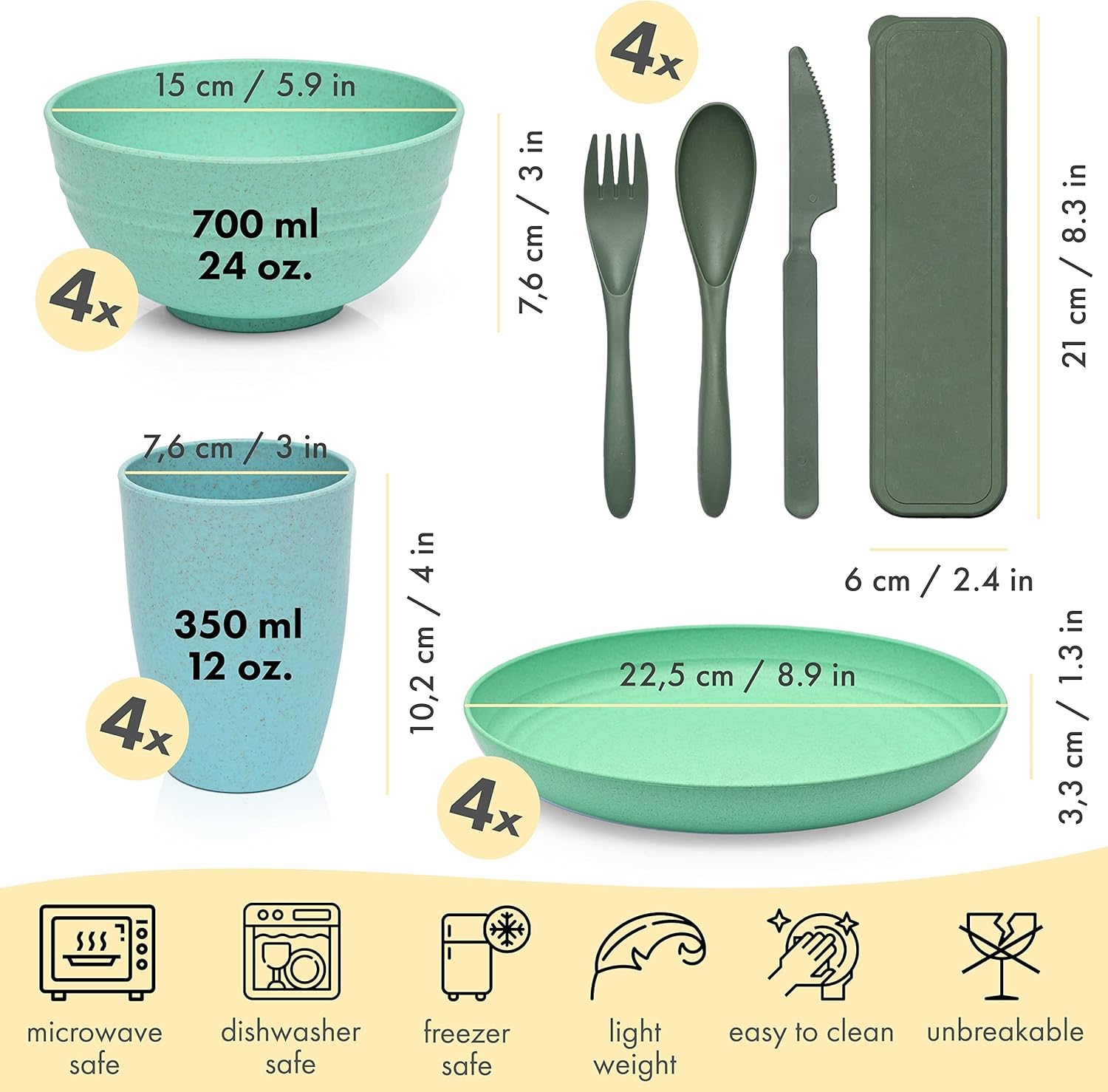 | Item Type Name | FOODLE Wheat Straw Dinnerware Sets - (28pcs) Lightweight & Unbreakable Dishes - Microwave & Dishwasher Safe - Perfect for Camping, Picnic, RV, Dorm - Plates, Cups and Bowls - Great for Kids & Adults |