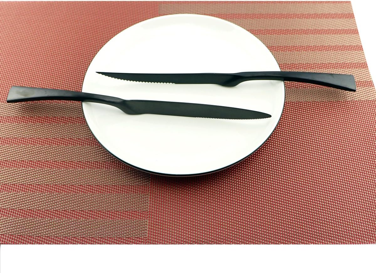 About Products services If you have any problems with your purchase, please email us and we will respond in a timely manner After receiving the items, if you have any problem contact us and we will solve the issue to your satisfaction About Size Steak Knife Dimensions: Length: 21cm / 8.26 inch Weight: 85g / 3oz Dinner Spoon Dimensions: Length: 19.5cm / 7.68 inch Weight: 40g / 1.41oz Dinner Fork Dimensions: Length: 19.5cm / 7.68 inch Weight: 35g / 1.23oz Dessert Fork Dimensions: Length: 18cm / 7 inch Weight: 30g / 1.06oz Dessert Spoon Dimensions: Length: 18cm / 7 inch Weight: 40g / 1.41oz About cleaning Use neutral detergent to flush it, Pls never use strong alkaline or strong oxidizing chemicals wash them.After cleaning your flatware, Please make it dry and keep the tableware clean and dry.