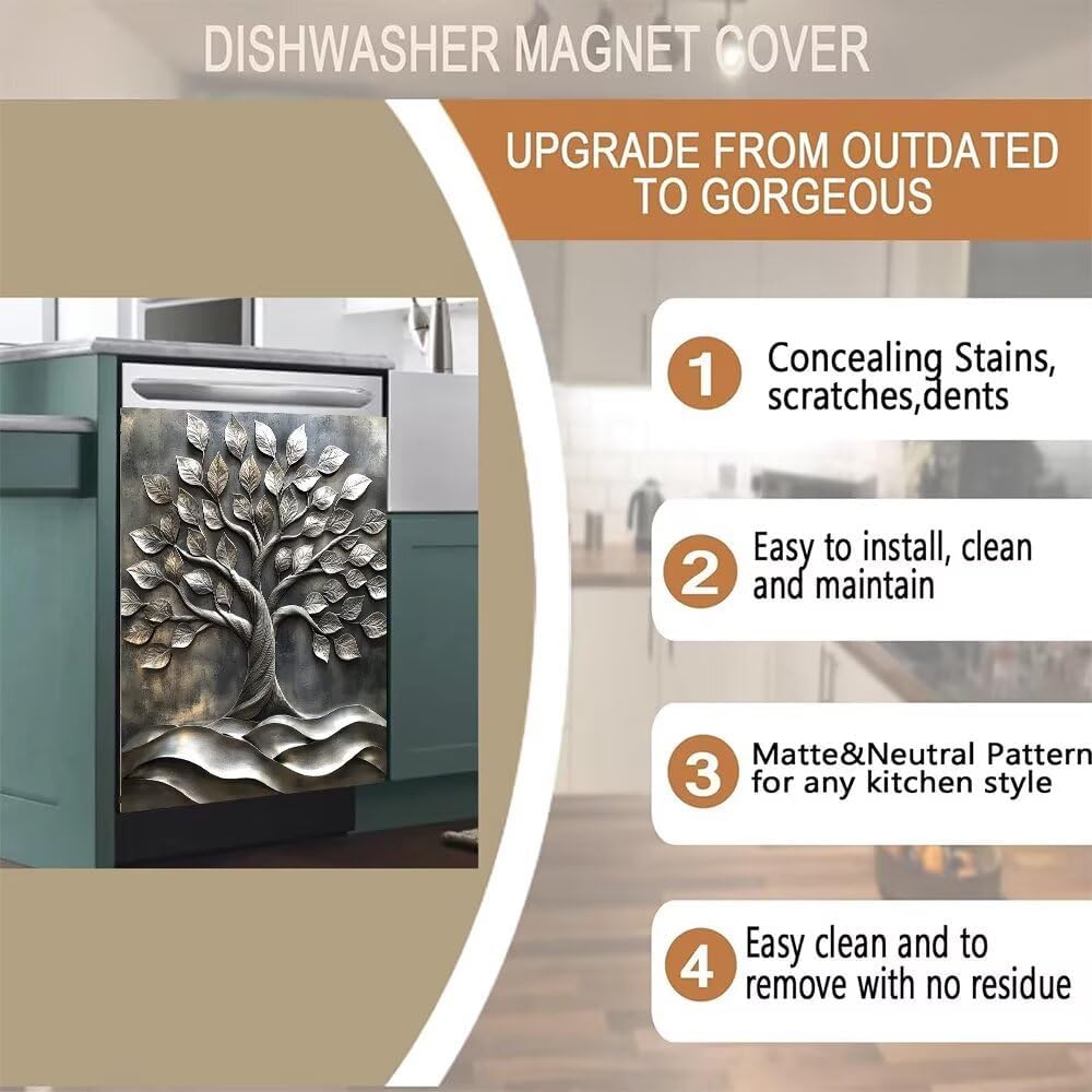 Using Metallic Tree dishwasher stickers and magnet covers is an affordable way to upgrade the look of your kitchen. They can instantly and easily cover up scratches, dents or other unsightly marks on the dishwasher. They can also be given as gifts to mothers, aunts, grandmas, friends on Christmas, Thanksgiving Day, Halloween, Birthday, etc.【Product details】: Magnetic Dishwasher Cover Skin PanelFits all Dishwasher ModelsEasy to Cut & Trim with a Box Cutter or ScissorsCredit Card Thin & Ships Rolled Up in a TubeSticks Instantly & Can Be Removed & Reapplied【Size】: 23W x 26H inches which fit about 90% of all dishwashers.【Note】: Just ensure that your dishwasher is magnetic before ordering the dishwasher cover magnetIf you have any questions about the product, please feel free to contact us to deal with the problem.