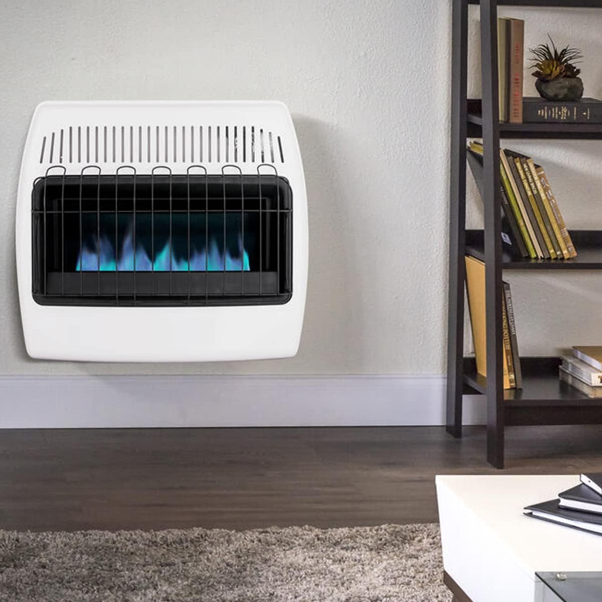 "This 30,000 BTU vent-free unit is the IDEAL choice for safe, indoor supplemental heating. It is great for use in. your home or cabin. This heater does not require electricity to operate, making this an excellent choice for everyday heating and emergency situations when the power goes out. This blue flame wall heater burns with 99.9% efficiency and operates on liquid propane or natural gas. Prior to placing your order, please check local and state codes to determine if vent-free heaters are permitted. This item is not for sale to these states: AK, HIShipping Dimensions: 29.02 H x 26.18 W x 11.22 D Product Dimensions:28 x 11 x 24 inches Shipping Weight: 32.4 lbs"