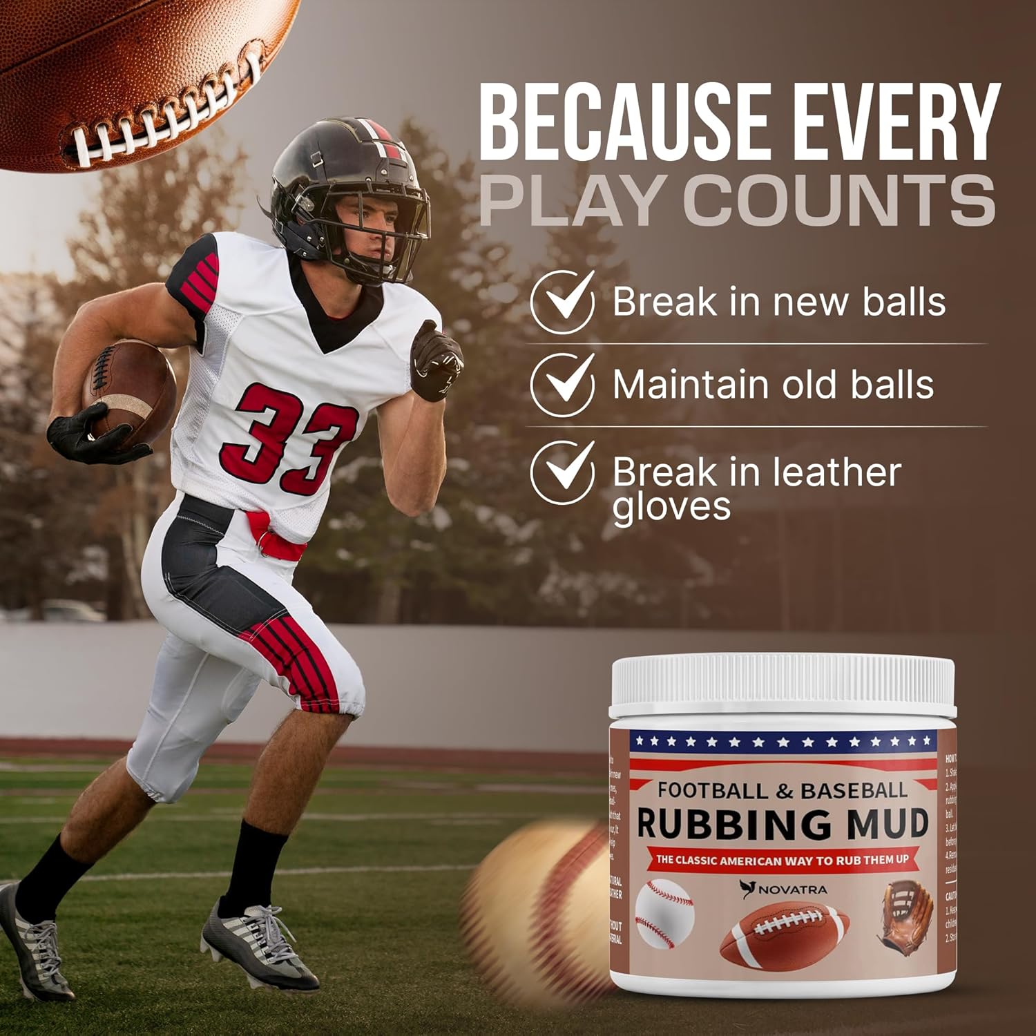 • Feel Like a Pro – Handle game-ready footballs and baseballs with our authentic rubbing mud, just like the pros.