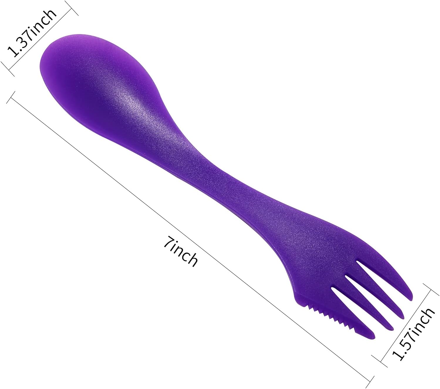 180Pcs Plastic Sporks 3 in 1 Travel Fork for Travel, Home, Restaurant (7 Inch) Feature: 1. Plastic sporks are made of plastic, easy to clean. 2. 3 in 1 spoon, knife and fork combination, the sides of the fork are designed with serrated which can be used as a knife to cut fruit. 3. Suitable for travel, home, restaurant. Specifications: ●Material: Plastic ●Color: 6 colors (Green, Red, Black, Blue, Yellow, Purple) ●Size: 7 Inch in length ●Packing: 180 pieces/pack
