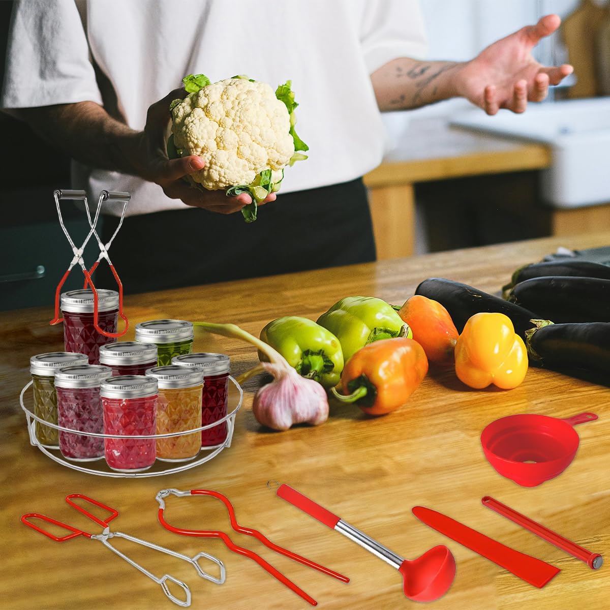 | Included Components | 1×Jar Tong, 1×Jar Lifter, 1×Jar Wrench ,1×Foldable Funnel, 1×Magnetic Lid Lifter, 1×Spoon, Bubble Remover, Canning Rack |