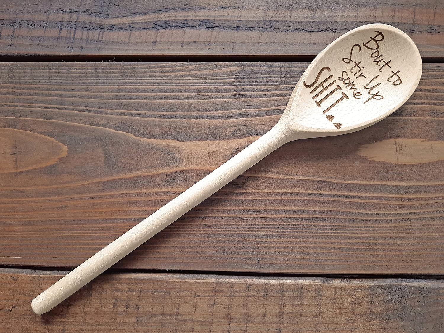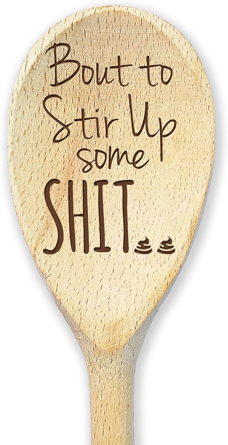 Funny Wooden Spoon Bout to Stir Up Some Shit Laser Engraved Wood Spoon Funny Gifts For Mom Gifts For Grandma Housewarming Gift Holiday Gift. The wood texture and color of the product can be a slightly different those presented in the photo. Do not wash in the dishwasher. I am creating Great Gifts for everyone.