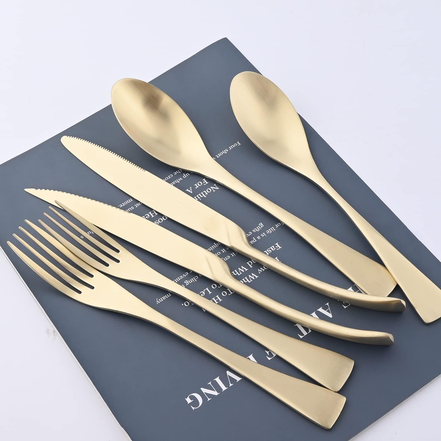 Product Detail: Material: Premium 18/10 Stainless steel, last for years Quantity: 24 pcs/set Package includes:service for 6 Food Safe:adopting high quality safety material,poisonless and tasteless Dishwasher Safe: Dishwasher safe without harsh detergen. Perfect Gift for Christmas, Anniversary, Housewarming, Mothers' days, Birthday etc. Suitable for home, hotel, restaurant, party Size: Dinner Knife Dimensions: Length: 25.5cm / 9.87 inch Steak Steak Knife Dimensions: Length: 25.5cm / 9.87 inch Dinner Spoon Dimensions: Length: 22cm / 8.66 inch Dinner Fork Dimensions: Length: 21.5cm / 8.45 inch Dessert Fork Dimensions: Length: 20cm / 7.87 inch Dessert spoon Dimensions: Length: 19.5cm / 7.5 inch