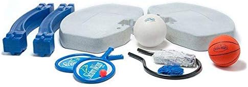 This portable sports set is an all in one entertainment center. The sand or water-filled bases can support a net for paddle ball or volleyball, and can also convert into one basketball hoop. The set includes the two bases, arms, a 20-foot volleyball net, attachable basketball hoop, two paddles, and a paddle ball. Nothing will go missing with the 3-in-1 basketball and volleyball game!