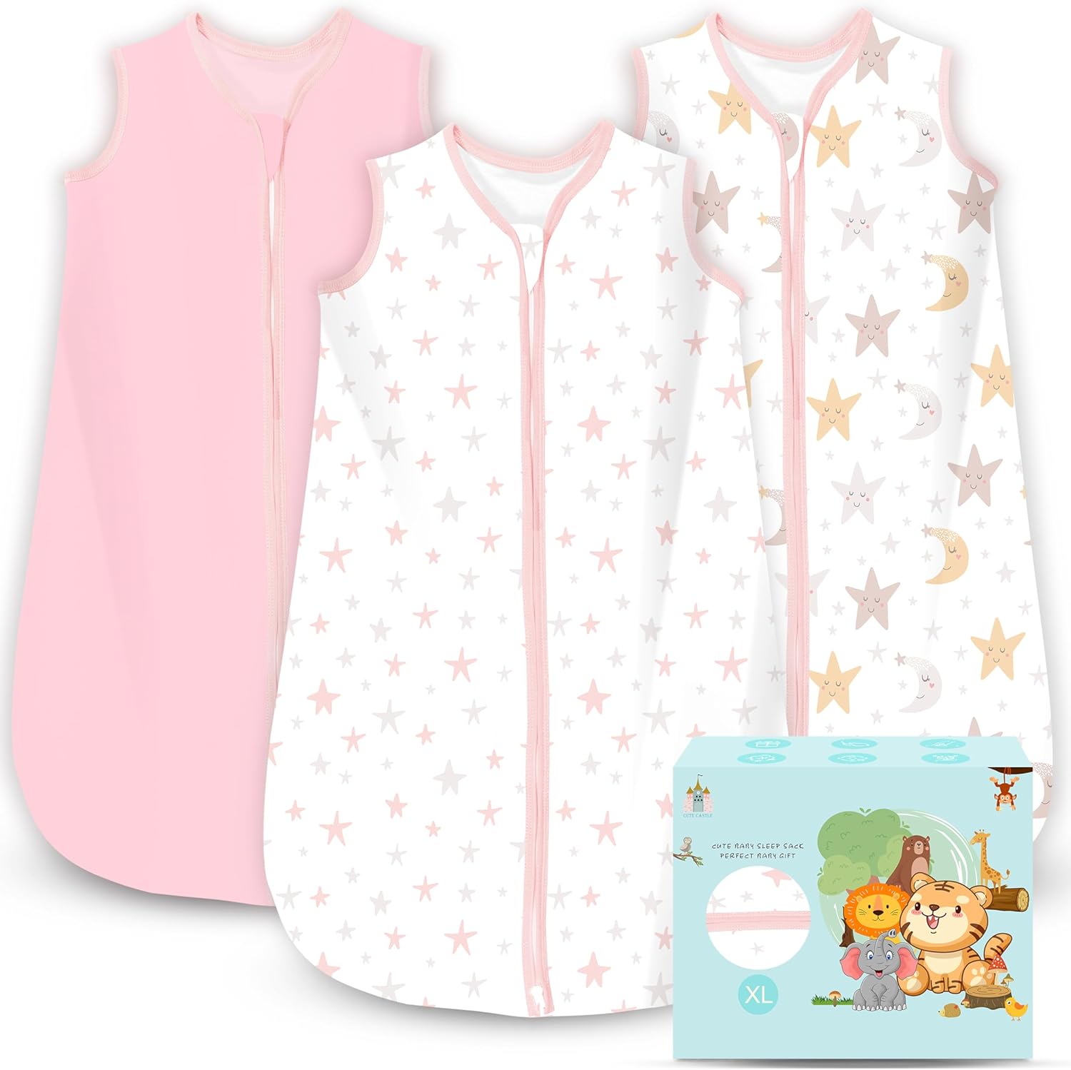Cute Castle Baby Sleep Sack 0-6 Months - Lightweight 100% Cotton 2-Way Zipper TOG 0.5 Infant Wearable Blanket , Newborn Essentials Toddler Sleep Clothes (6 Pack Green)