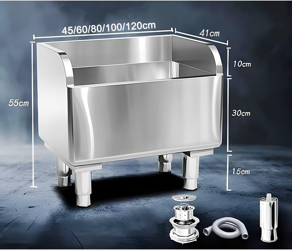 Multifunctional and practical sinks can be used for various types of personal and professional cleaning spaces to meet your various cleaning needs; keep your space cleanFeatures: 1. Rounded corners and folded edges, with wear-resistant and scratch resistant wire drawing process2. Thickened PPE drainage pipe, Soft and heat-resistant inner wall with smooth and unobstructed drainage3. Thickened triangular steel plate for footing connection, double the load-bearing capacity, the footing is stable and not swaying4. Product A is made of 201 stainless steel, while Product B is made of 304 stainless steelProduct Specifications:Name: Stainless Steel Floor-Standing Mop SinkColor: SilverMaterial: stainless steelSize: 10 typesPackage Includes:Stainless Steel Floor-Standing Mop Sink x 1Drainpipe x 1Drainer x 1Adjusting the feet x 4