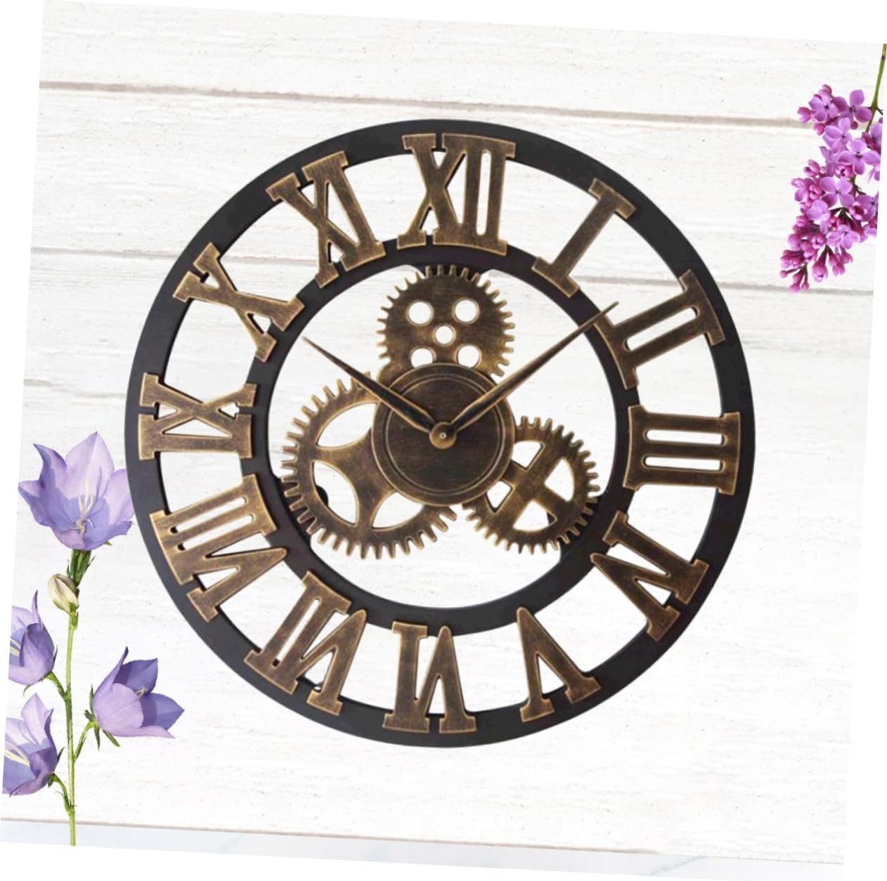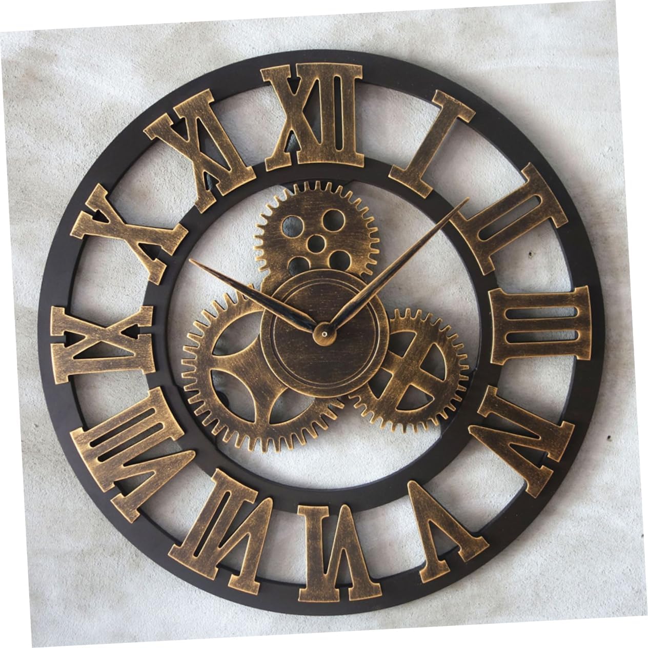 Package Include 1 x wall clock Characteristics - Color:Golden Decorative living room clock. - Easy to install and remove: wall clock is easy to and remove rustic decor. - Material: Wood wall clock digital. - Size: Approx. 34 x 34 x 4cm steampunk wall clock. - Wonderful for your friends and families retro decor. - Made of material, durable and safe to use rustic clock. - Industrial gear wall clock design, creative and fashion steampunk decor. - You can it on the wall of your bedroom, kitchen, and living room to decorate gear clock.Goods Informationliving room wall clock High precision movement provides an accurate time keeping.rustic clock This product is a wall clock.metal wall clock With good design, morden, creative and elegant.wall hanging clock Silent design, no ticking to ensure a good sleeping or working environment.retro wall clock Suitable for bedroom, living room, study room, office and children' room and so on