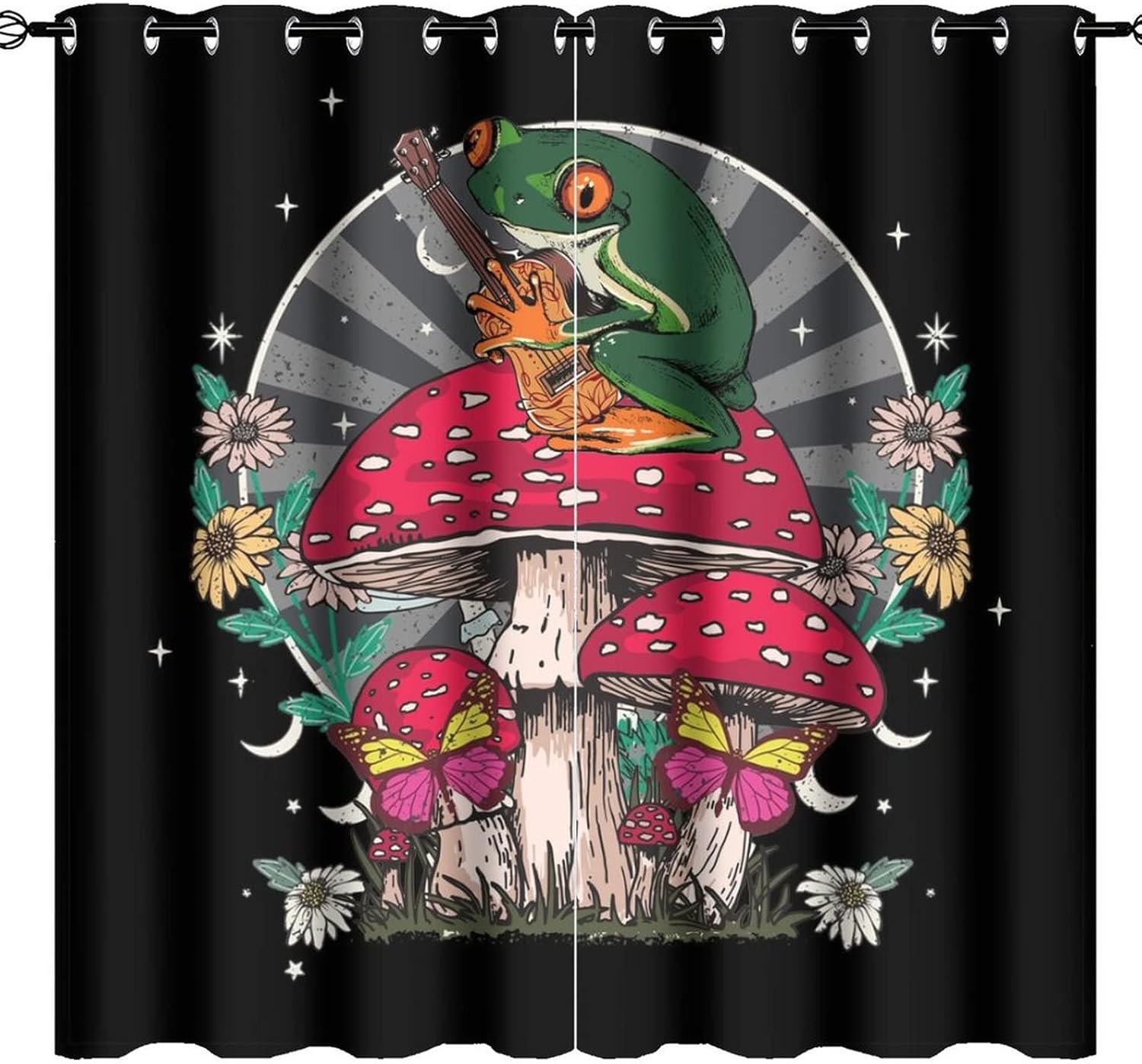 This Music Theme Mushroom Curtains can block out 85%-99% sunlight and UV ray ( Darker colors work better), perfect for late sleepers and afternoon naps. Our energy saving curtains insulate against summer heat and winter chill to balance your room temperature, reduce outside noise .Kazynee Custom Design Shop:Our curtains Immerse your home in splashes of color.The 3d print curtains give off a realistic tint in the whole room and turns the room into a magical colorful fairy-scape.Premium Material:Adopt high-quality 100% polyester fabric.Three-layer woven fabric, high-precision black silk shading partition,density of the middle black silk layer is double that of ordinary fabrics, greatly improve the shading effect.HD Printing Technology:High resolution pictures bring a perfect visual experience to your life.Industry-leading HD printing technology, No strange odor. Toxic free and safe.Easy Cleaning:This blackout curtains machine washable, gently cycle, no bleach, tumble dry low, and iron at low temperature settings.Kindly Remind:- Don't use sharp things scratching curtains.- For proper fullness panels should measure 1.5-2 times the width of your window.- 24 Hours customer support.- As different computers display colors differently, the color of the actual item may vary slightly from the above images.