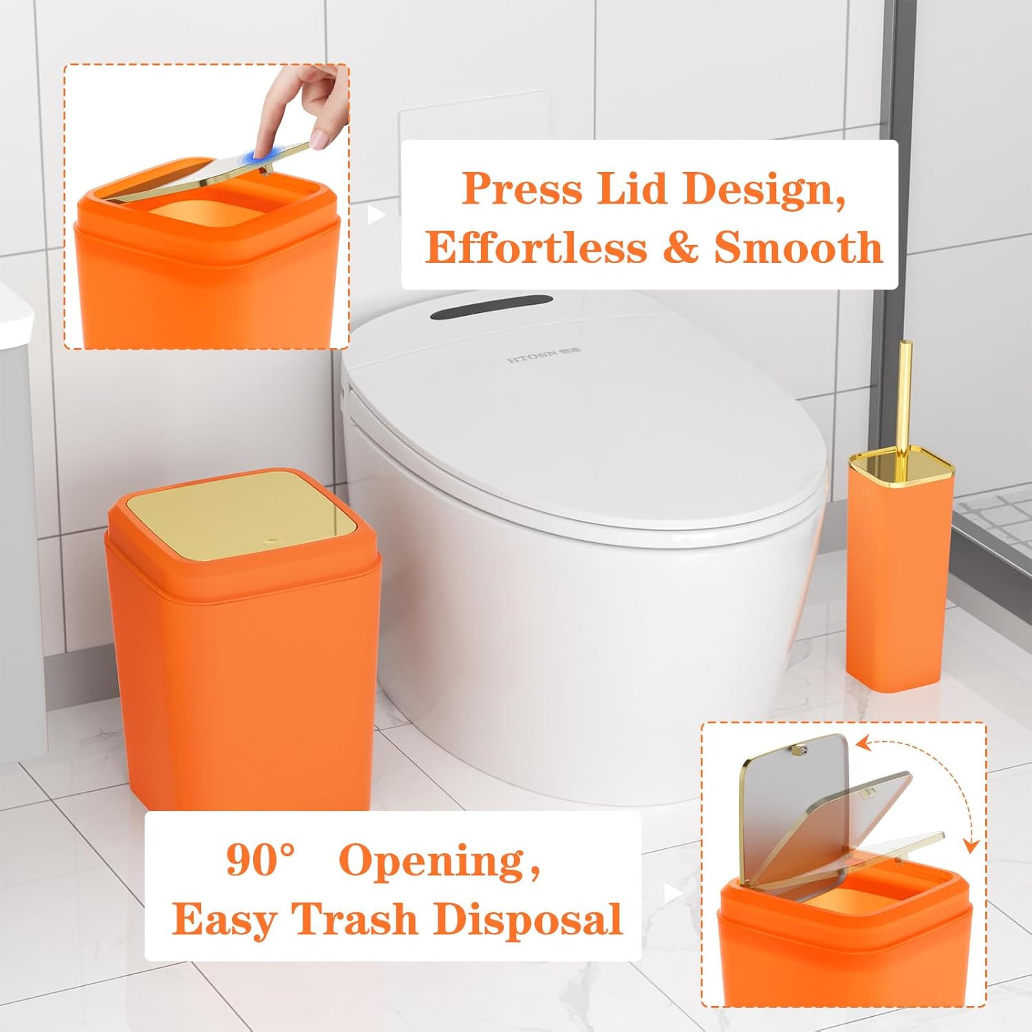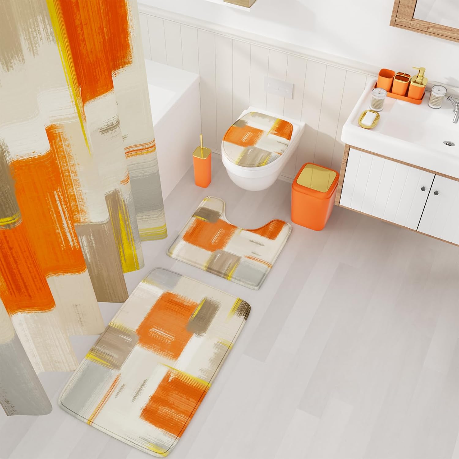 | Included Components | 3 x Bathroom Rugs Shower Curtain Soap Dispenser Soap Dish Toothbrush Holder Toothbrush Cup Trash Can Toilet Brush and Holder Tray 2 x Q-tip Holder 12 x Shower Curtain Hooks |