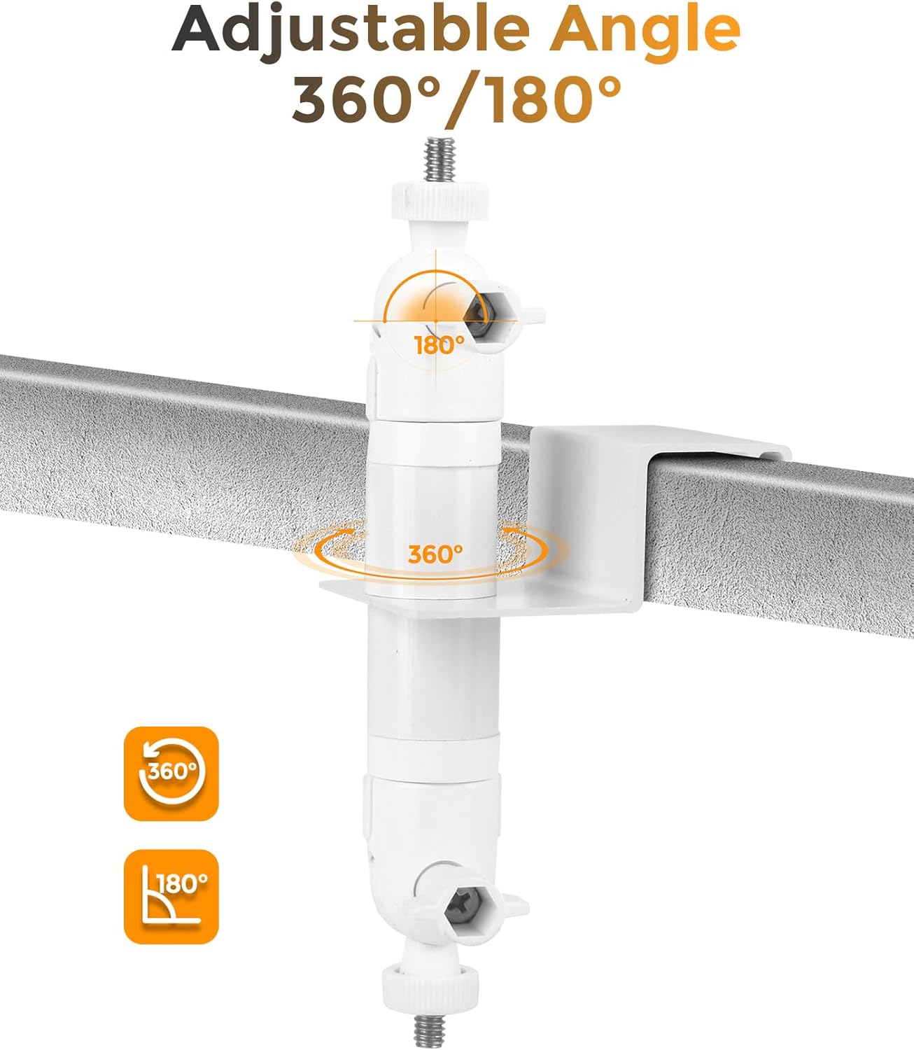 Upgrade your outdoor video camera setup with this 2-in-1 gutter mount, designed to securely hold both battery-powered cameras and compatible solar panels. Perfect for Stick Up Cam, Spotlight Cam Pro, Stick Up Cam Plus, and a variety of solar panels. No extra brackets needed.Constructed from high-quality plastic and stainless steel, this mount is rust-proof, corrosion-resistant, and weatherproof, providing long-lasting stability and protection in all seasons.Install both camera and solar panel at the same time with the no-drill design—simply clamp the gutter and tighten the wing screws for a secure, renter-friendly setup.Adjust your setup with 360° rotation and 90° tilt, ensuring your camera captures the perfect view and your solar panel receives maximum sunlight.The two-in-one design features a long arm with a standard 1/4"-20 threaded screw for solar panels and a short arm with a 1/4"-20 threaded screw for cameras, allowing a neat, all-in-one installation on your gutter.