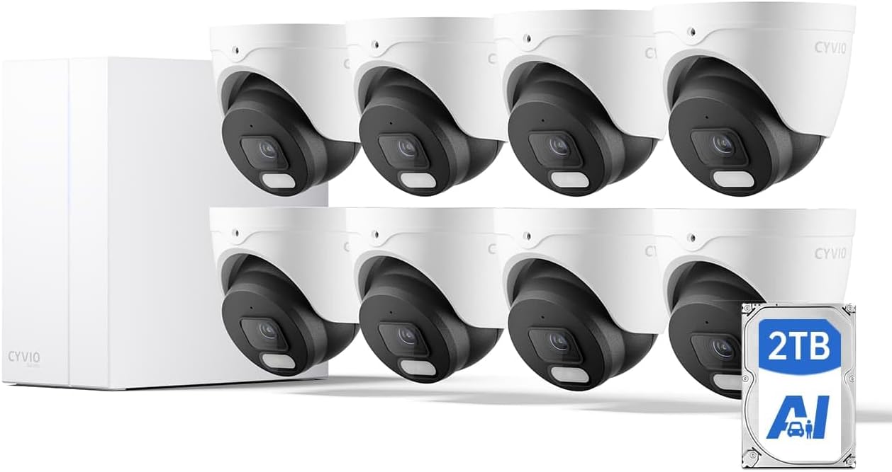 4K PoE Camera System, Color Night Vision, AI Detection, Spotlight, IP67 Waterproof, 8Pcs 8MP Outdoor Wired Home Security Cameras, 4K 8CH NVR with 2TB HDD