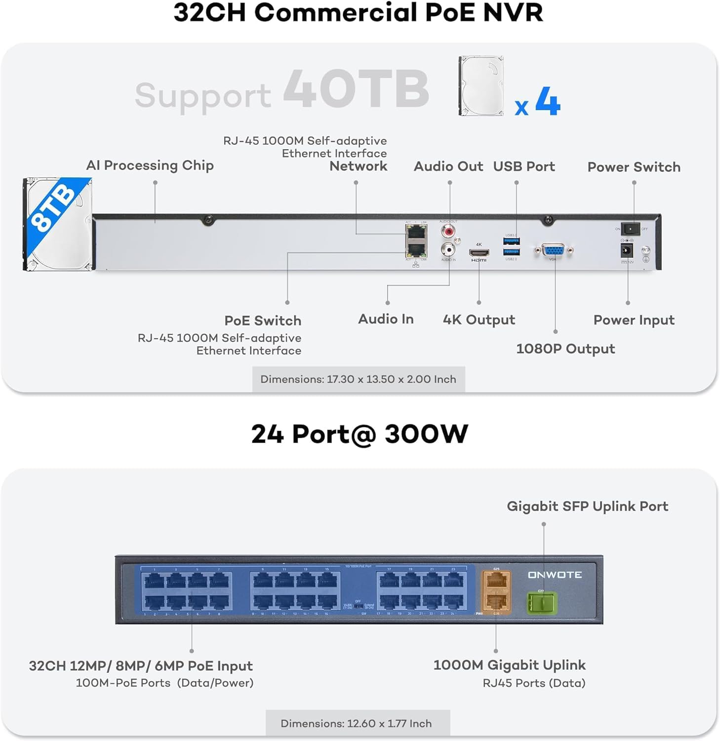 ONWOTE 32 Channel 6K NVR PoE Security Camera System 8TB, (26) Outdoor Wired PoE IP Camera