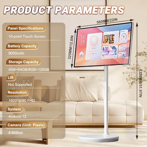Elevate your entertainment experience with our Portable Smart Monitor, the perfect gift for housewarmings, birthdays, and special occasions. This versatile 21.5/24/27/32-inch touchscreen mobile TV integrates advanced technology with user-friendly features, making it suitable for a variety of settings. With stunning 1080P/4K resolution, this portable TV offers crystal-clear visuals that enhance movie nights, gaming sessions, and work presentations. Choose from powerful memory options of 4+64 GB or 8+128 GB to ensure seamless performance, while the robust battery life of 5 to 8 hours allows for extended viewing without interruptions. Designed for convenience, the adjustable tilt and swivel functions provide the perfect viewing angle, whether you're relaxing in the living room or collaborating in the office. Easily project your favorite movies, music, and videos through USB or wireless connections, making sharing content with family and friends a breeze. This Portable Smart Monitor is more than just a TV; it’s a complete entertainment solution. Its lightweight design and pulley base facilitate easy transport, making it ideal for both indoor and outdoor use. Whether you’re preparing for a casual game night or an important business meeting, this mobile smart TV adapts effortlessly to your needs. The package includes everything required to get started: a remote control, support rods, power supply, adapter, tool kit, and user manual.