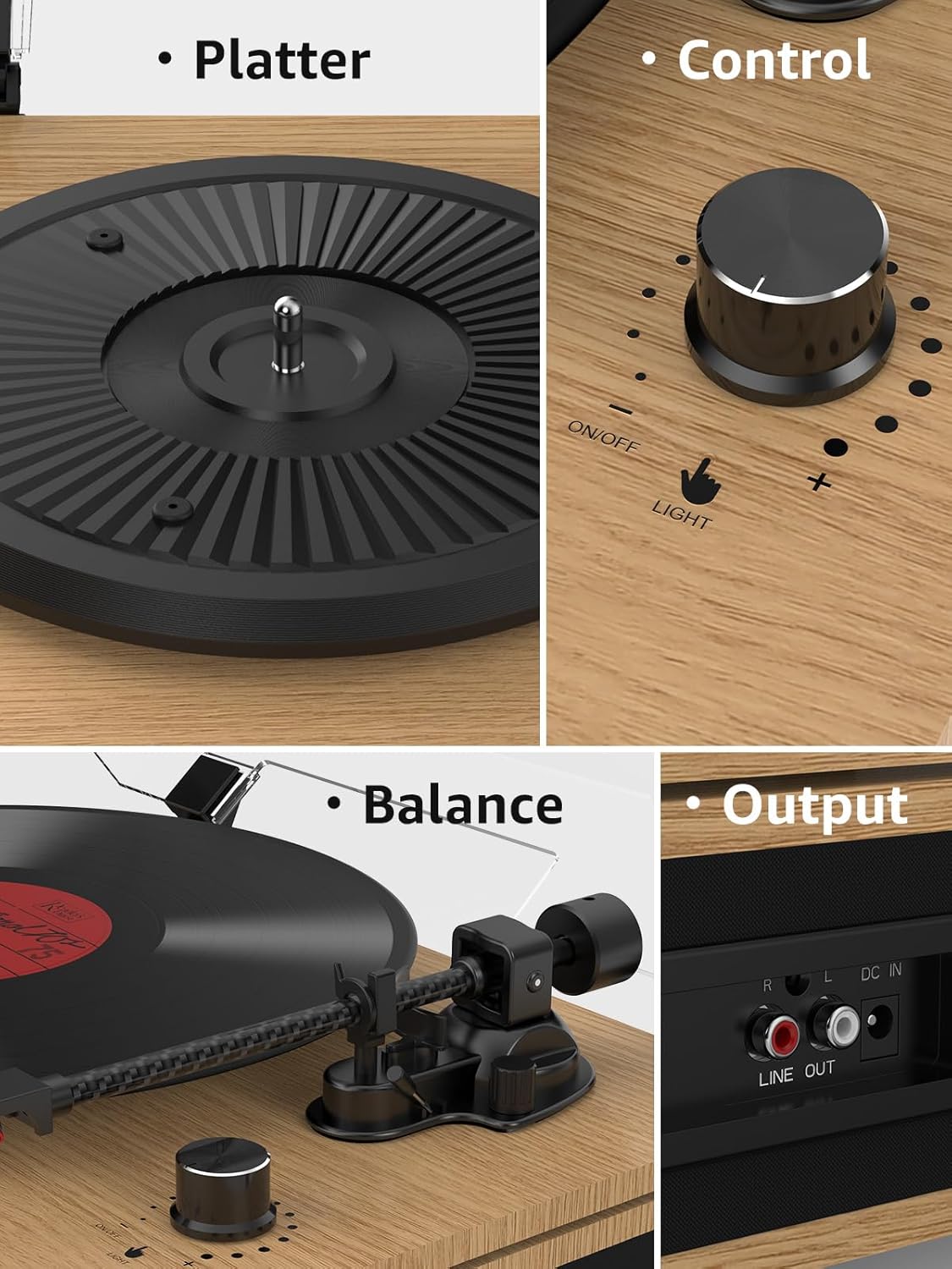 | Additional Features | 2 Speed Record Player (33&45RPM), AT-3600L Magnetic Cartridge Stylus, Around warm light strip, Bluetooth Input, Built In Stereo Speaker |