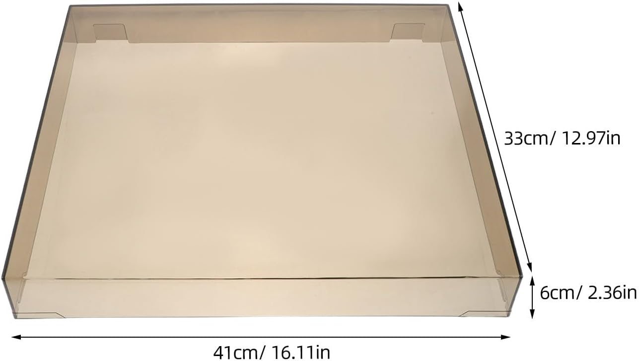 DescriptionUpgrade your audio machine with a transparent protective lid for turntable that seamlessly fits most vinyl record players. This acrylic protective dust cover doubles as a record player dust cover replacement, offering both high-clarity display and exceptional protection from scratch and debris, enhancing your overall listening and display experience.Features-Color:Transparent-Material:Acrylic-Size:41.00X33.00X6.00cm/16.14X12.99X2.36in-Maximum Dust Protection: This plastic turntable cover acts as a dust cover, ensuring your stereo components and turntable stay free of dust and static for optimal performance-Attractive Display: The clear equipment dust cover lets you view your record collection and player effortlessly, doubling as a record player display cover that enhances your space without sacrificing functionality-Enhanced Sound Longevity: With a cover for turntables, you prevent particles from interfering with the platter and stylus, preserving your records’ sound integrity over prolonged use-Quick Removal & Placement: Designed for convenience, this record player cover allows for quick removal, making record swapping and maintenance easier while keeping your player protected every day-Broad Fit Solution: As a dust covers for audio equipment, this lid matches multiple vinyl record players, ensuring a secure fit for most popular models and acting as a trusted turntable dust cover protective cover
