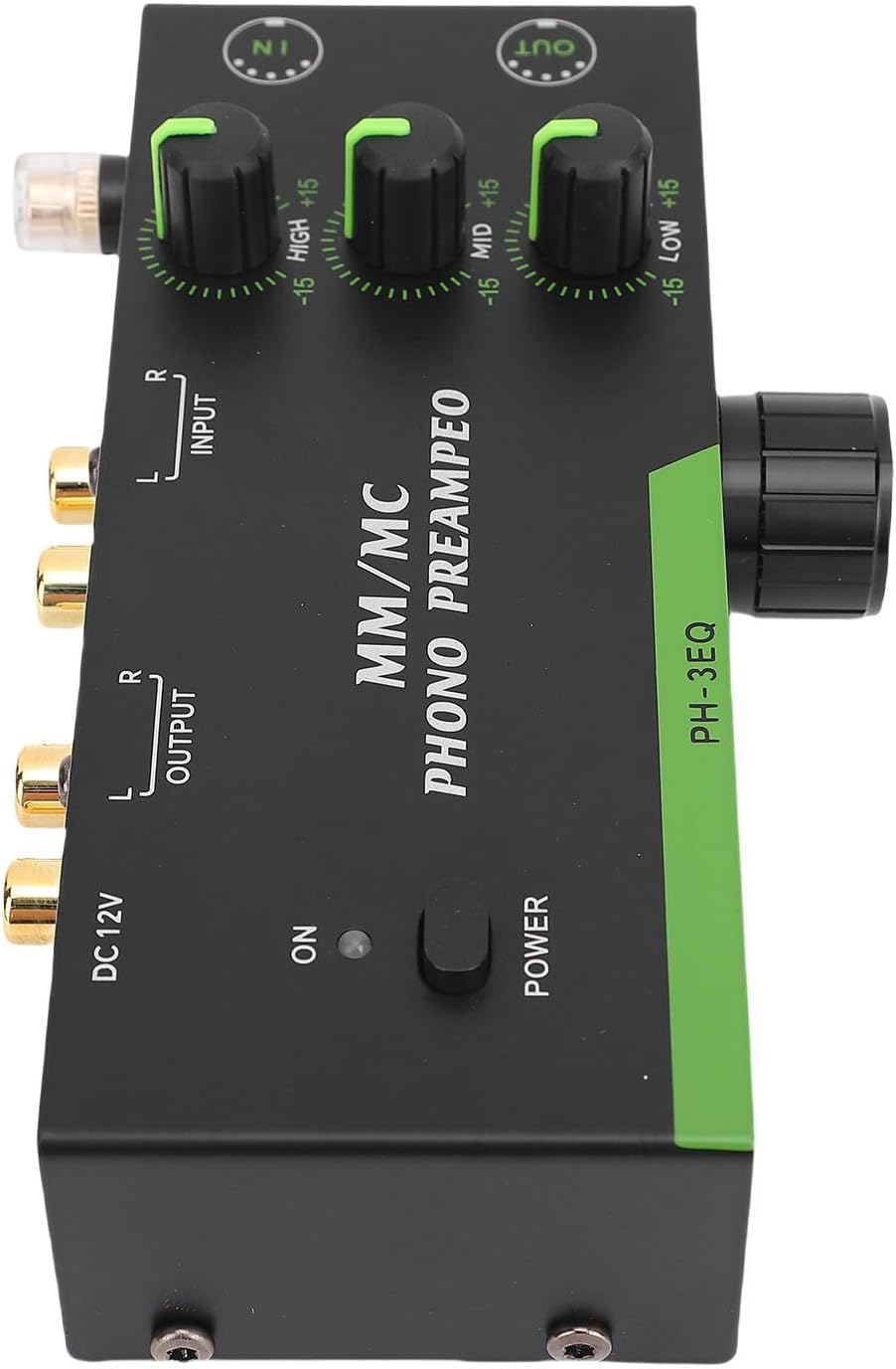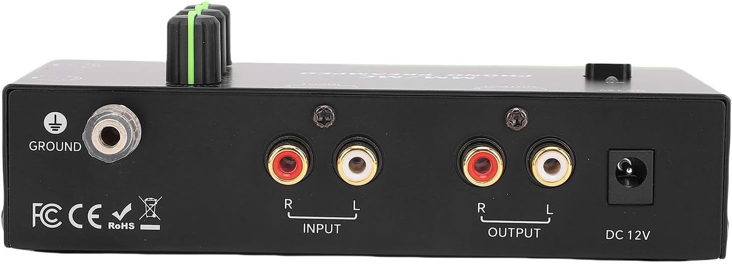 1. PURE AND BALANCED, ENHANCING SOUND QUALITY: Phono preamp can accurately catch the weak sound signals output by the playback head and simultaneously perform balanced compensation based on the recording standards of the record to restore the original rich tone of the record 2. INPUT AND OUTPUT: The phono preamplifier offers MM/MC mode switching for the line output of active speakers and 3.5MM headphone output to achieve maximum flexibility 3. THREE FREQUENCY ADJUSTMENT: The professional mini preamp supports independent adjustment of high, medium and low frequencies, with a wide range of control from -15 to +15. The melodious low frequencies of classical music, the lively mid frequencies of jazz, and the clear high frequencies of classical guitar can all be changed according to your preferences 4. FIVE PIN XLR INPUT OUTPUT: Adjustable phono preamp can balance the connection of microphones and line level devices(such as mixing consoles, sound interfaces, etc.), effectively reducing electromagnetic interference, transmitting quality sound signals, and ensuring clear and stable sound 5. FUNCTIONS AND EFFECTS: The stereo phonograph preamplifier enables trusted sound signal transmit among sound devices and can be used for turntable and record players Specification: Item Type: MM/MC Phono Preamp Transmission: 10Hz-20kHz (+/- 0.5dB); 10kHz-50kHz (+/- 2dB) Distortion Coefficient: Input Sensitivity: MM: 58 MV, MC: 6.8mV Signal To Noise Ratio: MM>83 dB, MC>70 dB Input Impedance: MM: 47 KOhm, MC: 100 Ohm Output Impedance: 250 Ohm, Gain Ratio: MM: 40 DB, MC: 60 dB Input Capacitance: 300pf Input: 1 x Stereo, 1 x 5 pin DIN (DCIN PHO-300) Output: 1 x Stereo, 1 x 5 pin DIN (DC OUT PHO-300ps) Maximum Power Consumption: 10W Material: Aluminum alloy How to Use: Direct installation and use Package List: 1 x MM/MC Phono Preamp 1 x User Manual 1 x Supply Cord
