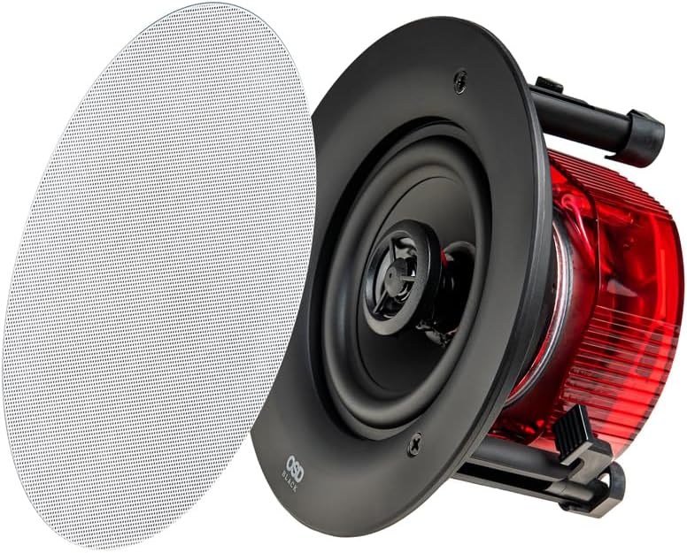 Recessed in-ceiling LED lights have become the most popular type of lights these days. Our small-aperture in-ceiling speakers match this size and can be harmoniously integrated into your lighting design.Often speakers this small make compromises in sound quality, not so in our case. The separate tweeter and woofer provide very high sound quality from a speaker so small. Equally impressive is the high sound level with minimal distortion. Capable of playing at over 90 decibels these speakers can reach reference cinema levels.The frequency response extends down to 70 Hz -10dB, allowing for rich vocals and great bass punch. For additional bass an in-ceiling or in-room subwoofer can easily be addedSmall aperture speaker: Matches in-ceiling light fixtures for better-looking design.Separate tweeter and woofer: Higher quality full-range sound means higher highs and lower lows.50 Watts RMS, 8 Ohms: Compatible with all amplifiers and will exceed 90dB – very loud!Paintable trimless grill: The micro-perforated white grill can be painted to match the ceiling color.Rear dust cover prevents dust from affecting the performance.Dolby Atmos ready, position your height speakers exactly where they should be – overhead.
