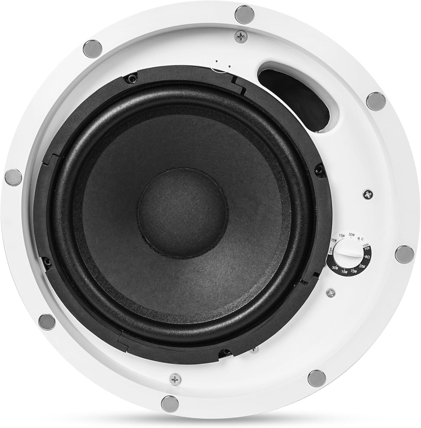 Sound Town Pair of 8" Two-Way Coaxial In-Ceiling Speaker, Flush Mount, 70V/100V/8-Ohm Operation, Magnetic Grill, White (STCS8N-PAIR) Introducing the Sound Town STCS8N-PAIR flush-mount in-ceiling speakers tailored for those who truly care about performance. This set includes a total of two STCS8N coaxial in-ceiling speakers, each boasting a robust 8" woofer alongside a 1" coaxial compression driver. Together, they deliver a powerful output of 80W RMS and 160W program power at 8Ω.Designed with a built-in multi-tap transformer, these flush-mount in-ceiling speakers can support 70V/100V and 8Ω (low impedance) and can easily be adjusted using the baffle-mounted tap switch. This ensures a seamless integration with virtually any professional sound system. Flush-mount installation provides secure mounting to ceilings in both residential and commercial settings.With its white-painted magnetic grill, the STCS8N-PAIR offers a sleek, elegant finish that matches many different types of environments and settings while the 120° conical sound coverage ensures immersive sound dispersion to your audience. This makes the STCS8N-PAIR flush-mount in-ceiling speakers an optimal choice for venues like restaurants, cafes, bars, lobbies, conference rooms, auditoriums, retail stores, casinos and much more!