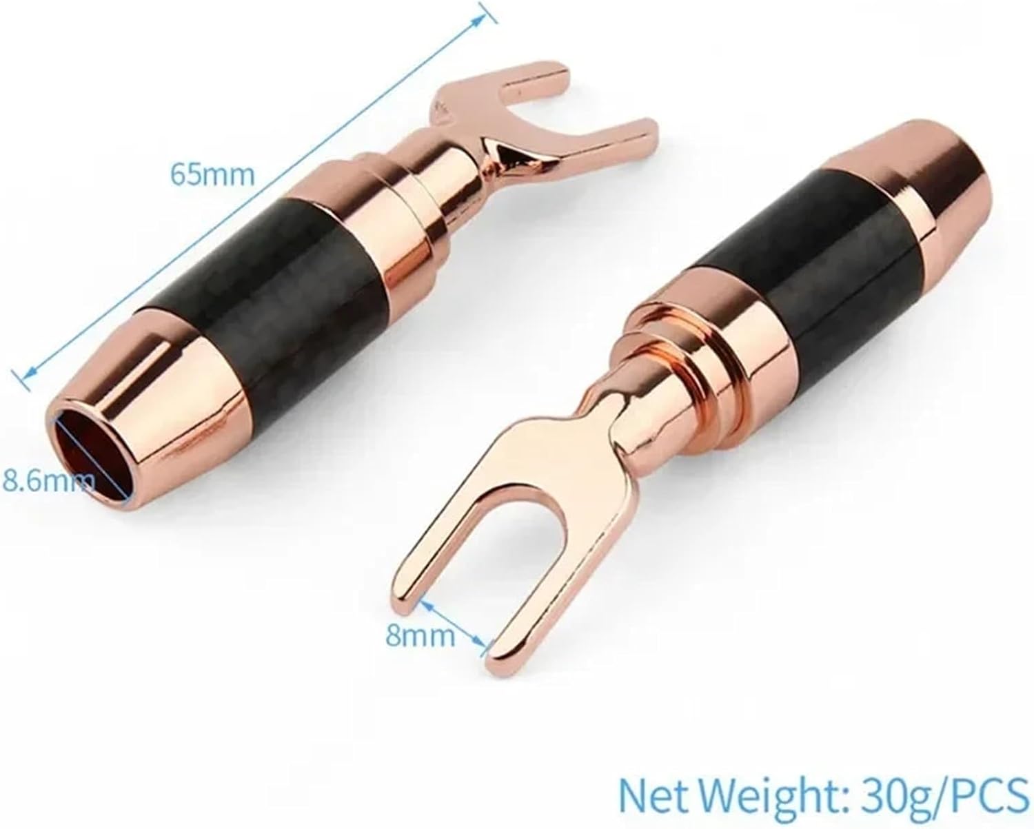 Speaker Wire ConnectorsBanana Y U Shape Screw Fork Spade Bananas Connectors Audio Electronics Speaker Connector Gold Rhodium PlatedMain material: CopperPlating process: Gold plated; Rhodium PlatedWire Hole Diameter: 8.6mmShell Material: Carbon fiberColor: Purple, SilverWorking Frenquency: Low frenquencyNet weight: About 30g/pcsPacking :-2/4/10/20 pcsx Banana