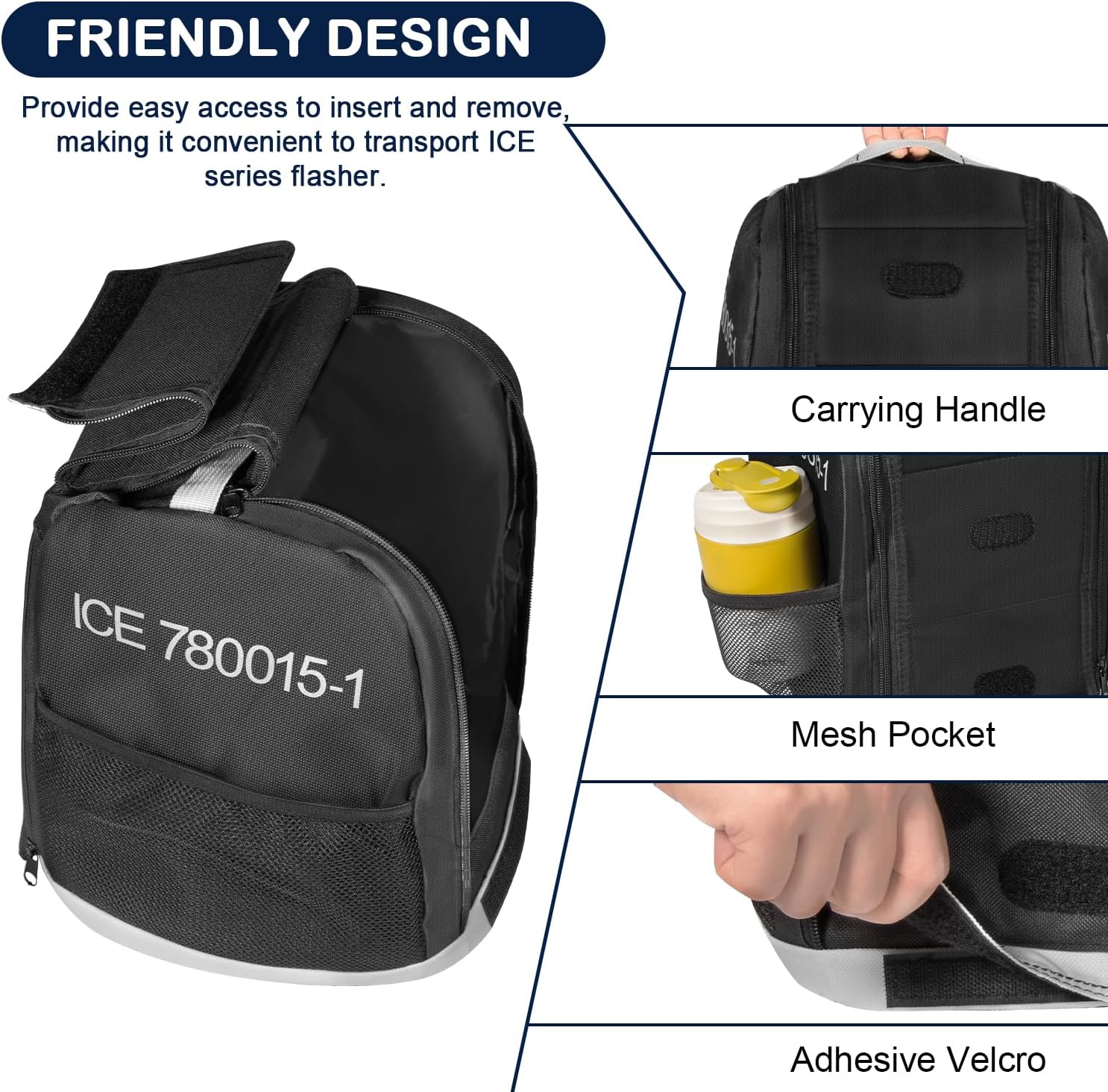 The 780015-1 Carrying Case fits for Humminbird ICE 35, ICE 45, ICE 55 ICE Flasher. Securely hold flasher, and provide a snug and protective fit during transportation and storage