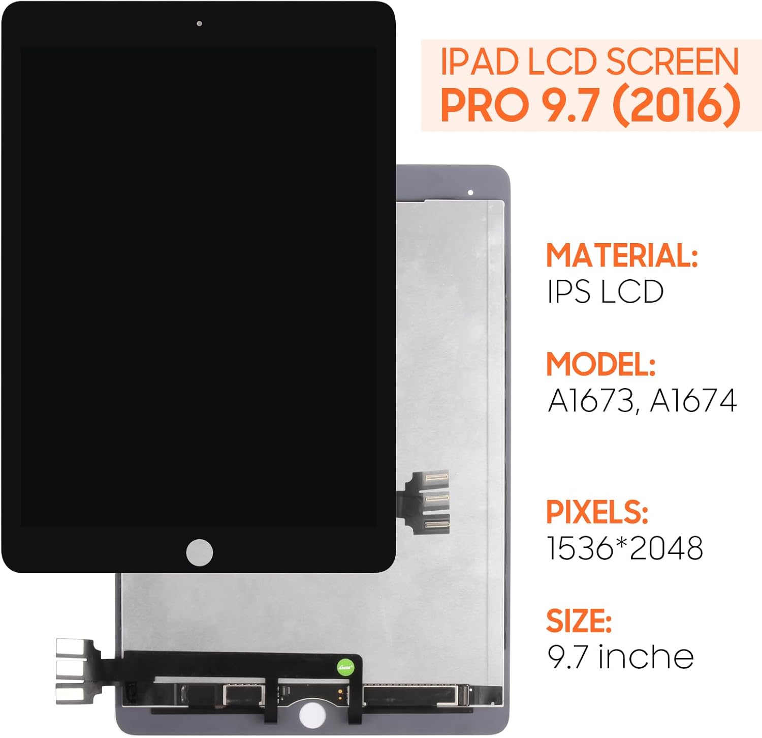 Packing List: ✔ 1*lcd screen display ✔ 1*Screwdriver Tool Set ✔ 1*Flat Crowbar ✔ 1*Triangle Opening Pick ✔ 1*Ejection Pin + Suction Cup ✔ 1*Double-sided adhesive ✔ 1*Dusting Stickers Installation Notes: ✍We do not provide paper installation instructions. You can search on YouTube: "For iPad Pro 9.7 2016 LCD Screen Replacement".Videos are easier to understand than paper instructions.If you don't find the right installation instructions, you can always contact us. We will help you to solve the problem. ✍Screen installation requires professional maintenance experience. If you do not have professional repair experience, please buy with caution! We are not responsible for any damage to the screen or device caused by installation errors! ✍Always disconnect the flex cable from the battery before installing the screen. Wait until the screen's flex cable is connected before connecting the battery's flex cable, otherwise the touch function may be abnormal or unusable. ✍You need to perform a screen test before installing the screen. Please do not remove any protective film or label during the test. Steps for testing: (1) Separate your own mobile phone first, disconnect the battery flex cable (2) Connect the replacement parts for reception test, then connect the battery flex cable, power on and test. If the test is successful, please install. If it is faulty, please contact us at the first time. And please do not force it to be installed in the mobile phone. Once the screen is installed, we will not be responsible.