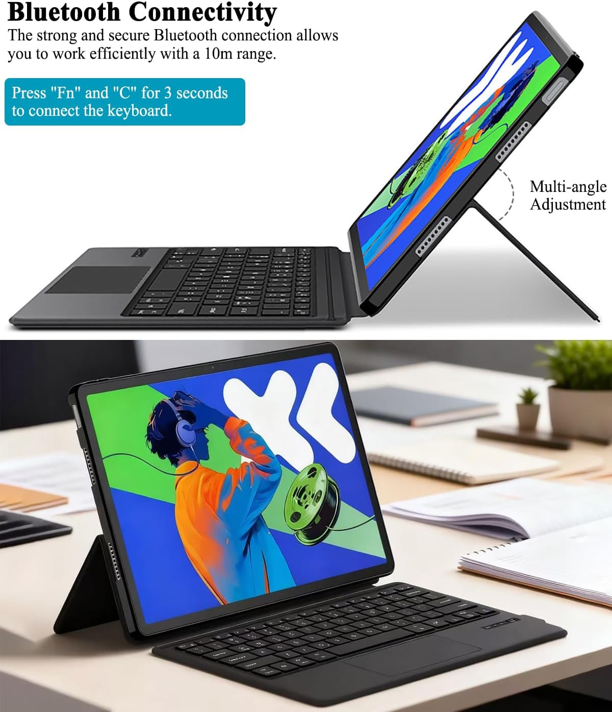 Keyboard Case for Lenovo Idea Tab Pro 12.7 Inch 2025 (TB373FU/TB375FC) , Rechargeable Bluetooth Keyboard Cover for Idea Tab Pro 12.7" with Any-Angle Stand, Multi-Touch Trackpad, Pencil Holder