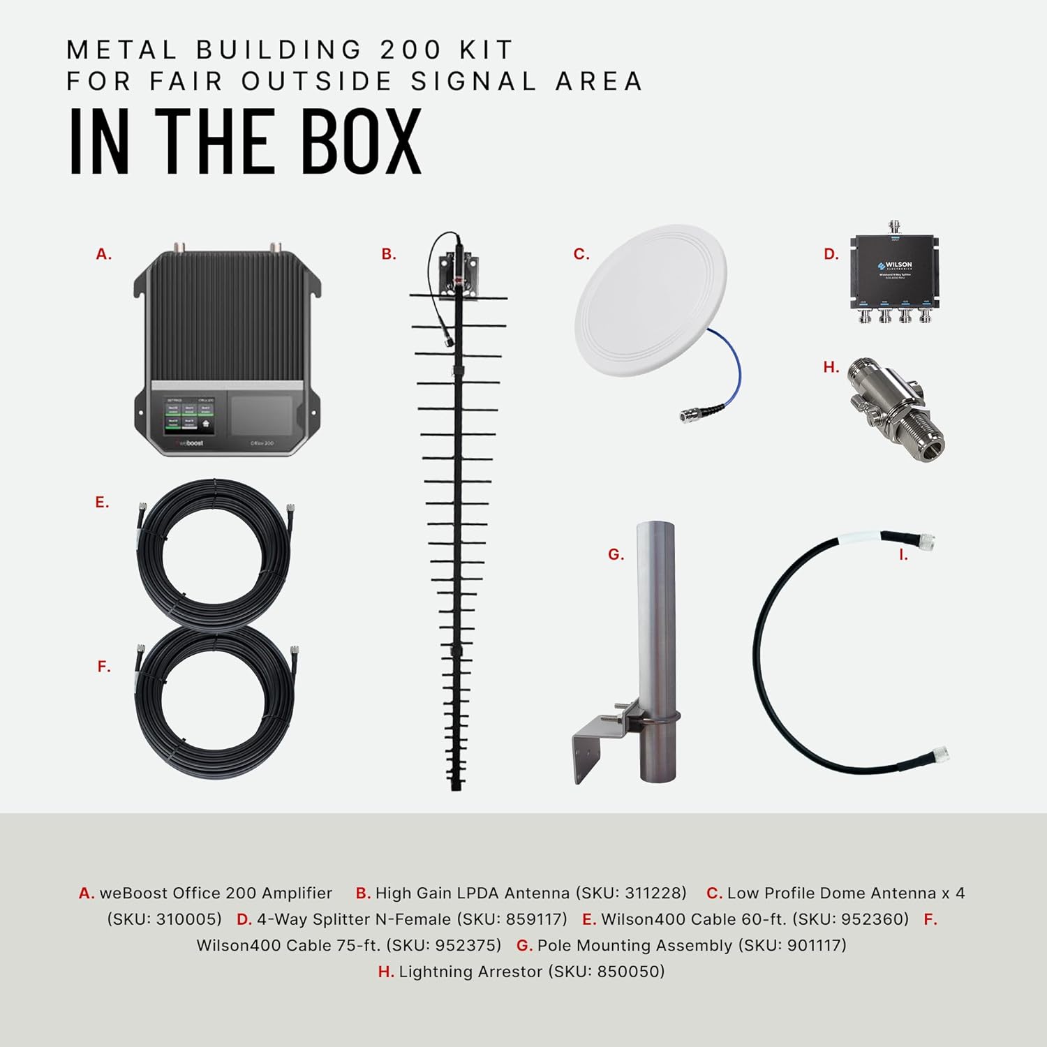 | BuiltIn Media | Cables, Inside Ceiling Antenna, Lightning Surge Protector, Office 200 Booster, Outside Omni Antenna, Power Supply, What's in the box?Cables, Inside Ceiling Antenna, Lightning Surge Protector, Office 200 Booster, Outside Omni Antenna, Power Supply |