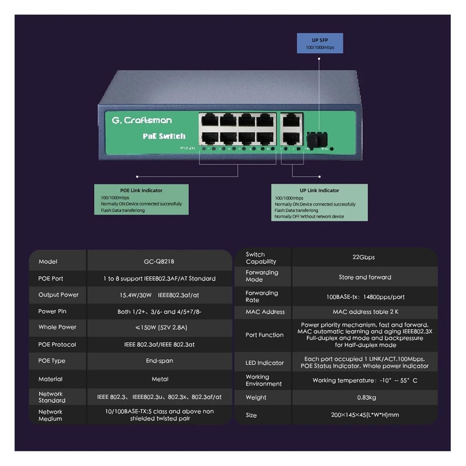 Industrial SwitchesPOE switch with 4/8/16/24 ports, IEEE 802.3af/at, 5MP/8MP/4K AP, 100/1000Mbps