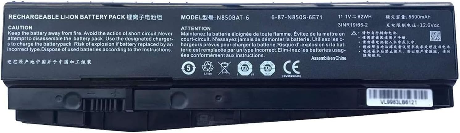 About Us:We are a professional manufacturer in the field of power tool batteries, laptop batteries, and charger.We are committed to providing high quality, competitive cost, and superior performance battery and best service to customers.Specification:Battery Type: Li-ionVoltage: 10.8VCapacity: 47WhWarranty: 1 year warranty!Compatible Part NO :N850BAT-6, 6-87-N850S-6E7, 6-87-N850S-6E71, 6-87-N850S-6U7, 6-87-N850S-6U71, 6-87-N850S-4U41Compatible Models (use "Ctrl+F to find your model quickly")CLEVON850, N850EK1, N850EL, N850EZ, N850HC, N850HJ, N850HJ1, N850HK, N850HK1, N850HN,N850Fit for HP, N850Fit for HP6, N850SN855, N855EJ1, N855EK1, N855HC, N855HJ, N855HJ1, N855HK, N855HK,1N857, N857EJ1, N857EK1, N857EP6, N857HC, N857HJ, N857HJ1, N857HK, N857HK1N870, N870EJB1, N870EK1, N870EP6, N870HC, N870HJ, N870HJ1, N870HK, N870HK1,N871EJ1, N871EK1, N871EL, N875EP6, NP7850HASEET6-X5, T6-X5S, T6-X7, T6Ti-X5, T6Ti-X5E, T6Ti-X5S, T6Ti-X7, T6Ti-X7E, T6Ti-X7S, X55TI, X55TI-581S1NZ6-KP5GT, Z7M-D2, Z7M-KP5D1,Z7M-KP5DC, Z7M-KP5GE, Z7M-KP5GS, Z7M-KP5S,Z7M-KP5S1, Z7M-KP5SC, Z7M-KP7D, Z7M-KP7DC, Z7M-KP7G1, Z7M-KP7GE, Z7M-KP7GS,Z7M-KP7GT, Z7M-KP7GZ, Z7M-KP7S, Z7M-KP7S1, Z7M-KP7SC, Z7M-KPGT, Z7M-SL5D1, Z7M-SL5S1, Z7M-SL7, Z7M-SL7D2MACHENIKE:T58, T58-D1, T58-D3, T58-D3T, T58-G3, T58-T1, T58-T1C, T58-T3C, T58-T5C, T58-Ti1C, T58-TixSCHENKER: Work 15, XMG A517, XMG A707TERRANS FORCE:DR5 PLUS, DR7 PLUSWOOKING:K17-8U, Z17-8UGIGABYTE:Sabre 17-W8SAGER:NP5850, NP5855, NP5870, NP6850, NP6852, NP6870, NP6872THUNDEROBOT:PLUS-U5F, PLUS-U5G, PLUS-U5TA, ST-PLUS,If you are not satisfied with your purchase in any way.Please give us an opportunity to try and make it right,We believe that communication is the best way to solve problems.If you have any questions or need any help,please feel free to contact usWe will try our best to make you satisfied