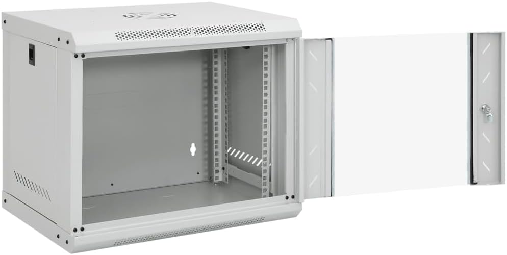 This 9U network cabinet is designed to be a great helper for keeping your network accessories in order.Solid structure: This data cabinet, featuring a solid structure, is made of premium cold-rolled steel, making it strong and durable to use. It is compatible with 19" standard equipment.Easy to maintain: The removable side panels make it easy to maintain network accessories.Lock device: Thanks to the included lock and key, the lockable front door prevents unwanted opening and keeps the items safe.Wall hanging design: You can either attach the cabinet to the wall or put it on the table.Color: GrayMaterial: Cold-rolled steel, glassOuter dimensions: 20.9" x 15.7" x 17.7" (L x W x H)Inner dimensions: 17.7" x 15.7" x 15.7" (L x W x H)Static loading capacity: 88.2 lbRemovable side panelsDegree of protection: IP20Includes the lock and keyLockable toughened glass front doorCompatible with 19" standard equipmentFan is not included in the deliveryCan be used to attach to the wall or put on the tableCalifornia Proposition 65