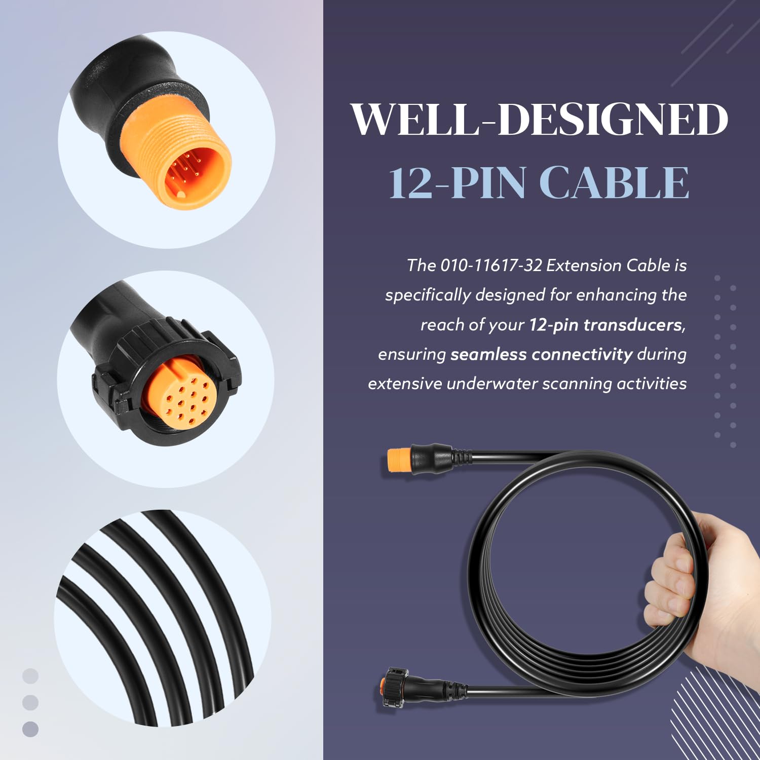- 【Great Features of the Cable】Part Number: 010-11617-32. Length: 10 Feet (3 Meters). Connector Gender: Male-to-Female. Number of Pins: 12. Automatically recognizes and configures compatible transducers, streamlining the setup process and ensuring optimal sonar performance with minimal effort